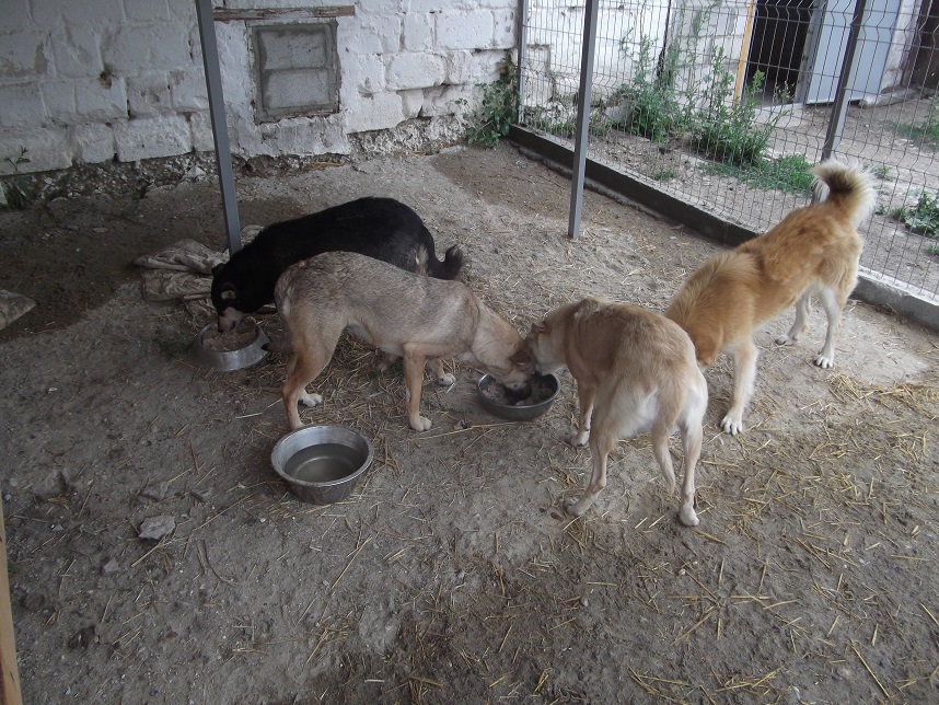 Berta und Laiko haben inzwischen auch eine Hütte bekommen, aber sie genießen einfach ihr neues Gehege und zeigen sich wirklich glücklich. Leider sind die Beiden ja noch sehr ängstlich und so haben sie jetzt 2 ganz liebe, menschenfreundliche Mädchen zu sich ins Gehege (ist ja relativ groß) bekommen, von denen sie hoffentlich schnell lernen können, dass ihnen im Heim nichts passiert und sie vor den Menschen hier keine Angst mehr haben müssen. Die 2 Mädchen haben wir aufgenommen, weil eine ehemalige Volontärin in der alten Casa selbst schwer erkrankt ist und sich nicht mehr um ihre Hunde kümmern konnte. Berta und Laiko haben sich sofort mit den beiden Mädels gut verstanden und sie harmonieren sehr gut miteinander (klar, Laiko ist jetzt Hahn im Korb J)
