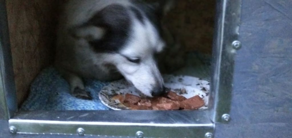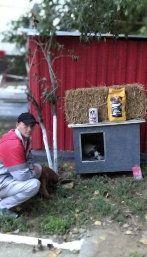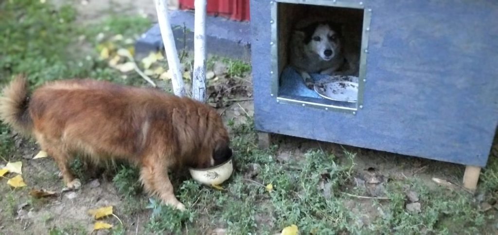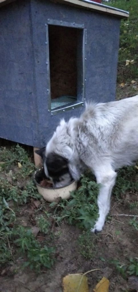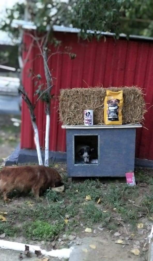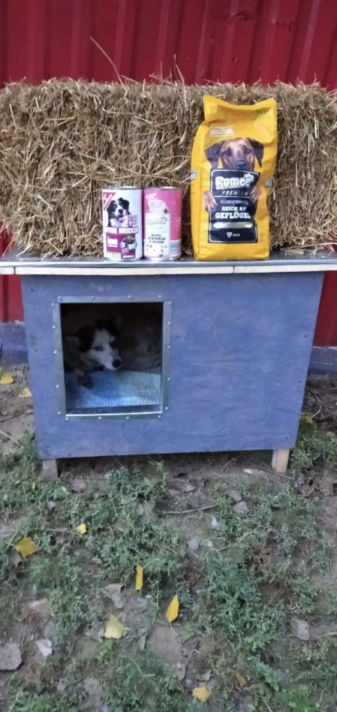 Liebe Freunde, dank Ihrer tollen Hilfe mit unserer Hüttenaktion konnten wir u.a. auch einer armen kleinen Hündin neben einer Tankstelle helfen. Tierschützer baten um Hilfe für die kleine Maus, die auch eine schwere Verletzung an einer Pfote hatte. Unser Tierarzt, Natasha und Sergiu fuhren hin, behandelten die kleine Hündin. Sie hält sich immer dort an der Tankstelle auf, hatte aber bisher keinen festen Unterschlupf. Jetzt hat unser Team eine Hütte, Stroh, Decken und Futter gebracht. So schön, die Kleine ist glücklich in ihrer Hütte und ein Kumpel kam auch noch gleich vorbei und konnte sich sein Bäuchlein füllen. Wir werden versuchen, die Hündin mit in unser Versorgungsprogramm mit aufzunehmen. Vielen Dank noch einmal an alle, die uns wieder so toll unterstützt haben.