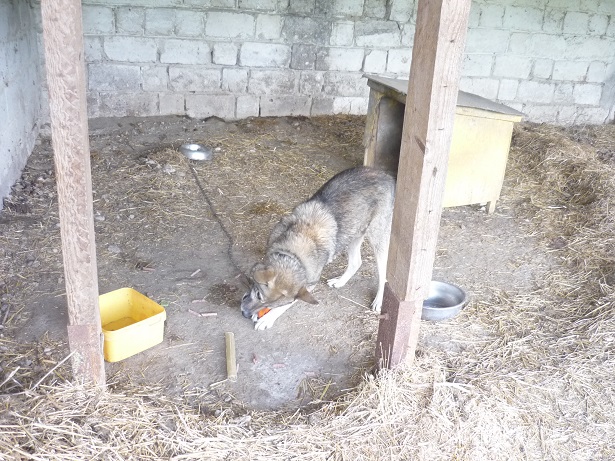 Ich freue mich, Ihnen endlich schreiben zu können, dass nun endlich auch unser Serghei von der Kette los ist und in sein eigenes Gehege umziehen konnte. So lange musste er in einem dunklen Platz an einer kurzen Kette leben und jetzt ist er endlich dieses Ding los und er kann in seinem Auslauf sich bewegen wie er will. Wir sind sehr glücklich und stolz, dies endlich umsetzen zu können, was nur Dank Ihrer treuen Unterstützung möglich ist. Eins der Bilder zeigt ihn an seinem schlimmen Platz und dann in seinem neuen Gehege….