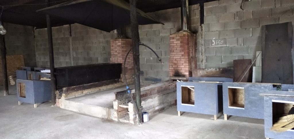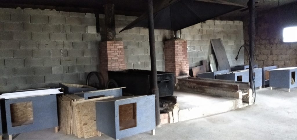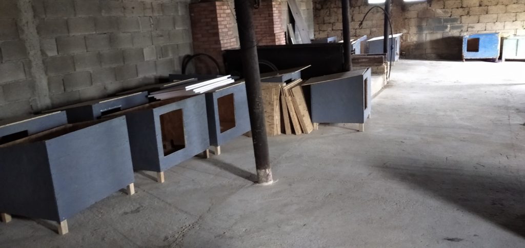 Unsere neuen Gehege sind ja nun schon fertig und die Hunde sind eingezogen. Auch das Kochhaus wurde neu gemacht und durch die Kamine an der Wand können die Gehege im Winter geheizt werden. Im Moment entstehen dringend benötigte neue Hundehütten, das ist auch die Werkstatt. Kaum sind die Gehege fertig, schon sind sie voll. Danke für Ihre Hilfe……