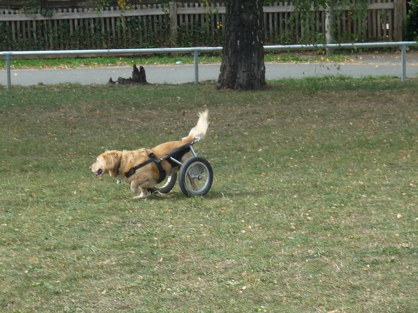heute muß ich wieder einmal eine Lanze für behinderte Tiere brechen. Am Samstag hat mich Marion besucht, sie hat schon vor langer Zeit unsere behinderte Sonja und den gelähmten Ghandi adoptiert. Die beiden Fellnasen kamen damals in einen sehr schlechten Zustand an und bei Ghandi hatte man sogar überlegt, ob man ihn nicht besser erlöst. Aber Marion hat für die beiden gekämpft und wenn man sieht, wie toll diese Tiere geworden sind, kann man sich nur noch freuen. Ghandi fegt mit seinem Rolli durch die Gegend und ist nicht aufzuhalten. Einfach wahnsinnig. Und auch Sonja läuft ohne Probleme Runden von 2 Stunden mit. Dazu kommt bei ihr noch, dass sie nicht nur bildhübsch – trotz abgeschnittenem Ohr und Prothesen –, sondern auch noch vom Charakter ein wahrer Traumhund ist. Marion hat für diese beiden Hunde das Leben mehr als lebenswert gemacht und wer die Fellnasen beobachtet sieht, welche Lebensfreude und Liebe sie zeigen. DANKE Marion, das sind so die Glücksmomente…….