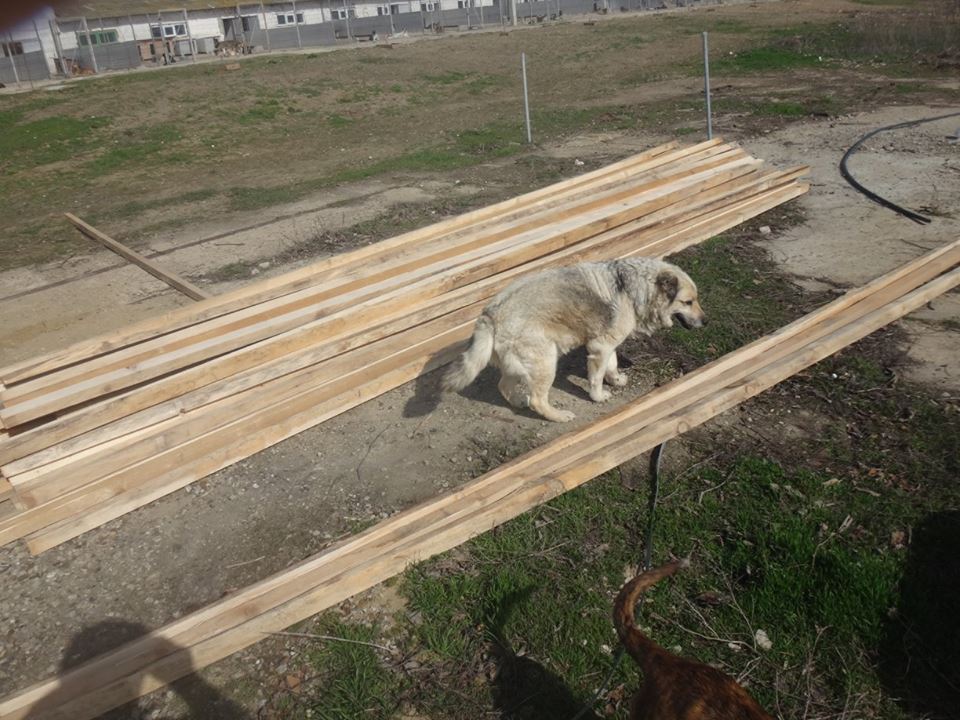 Anbei die ersten Bilder von den Arbeiten auf dem Dach, unser süßer alter Sebastian hilft vom Boden aus fleißig mit und inspiziert das Material, ob es auch den Anforderungen entspricht.