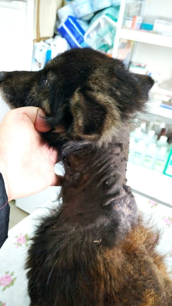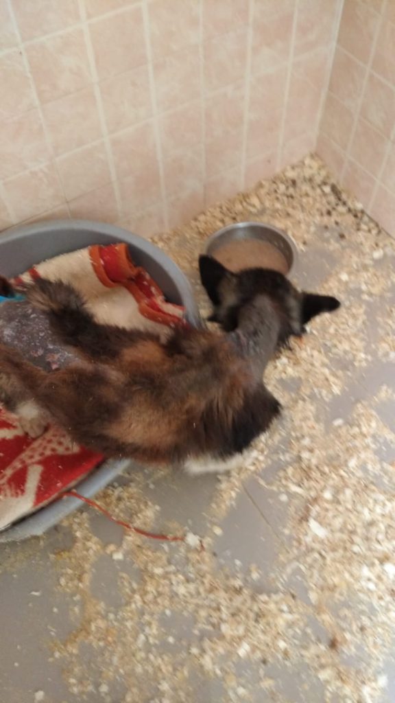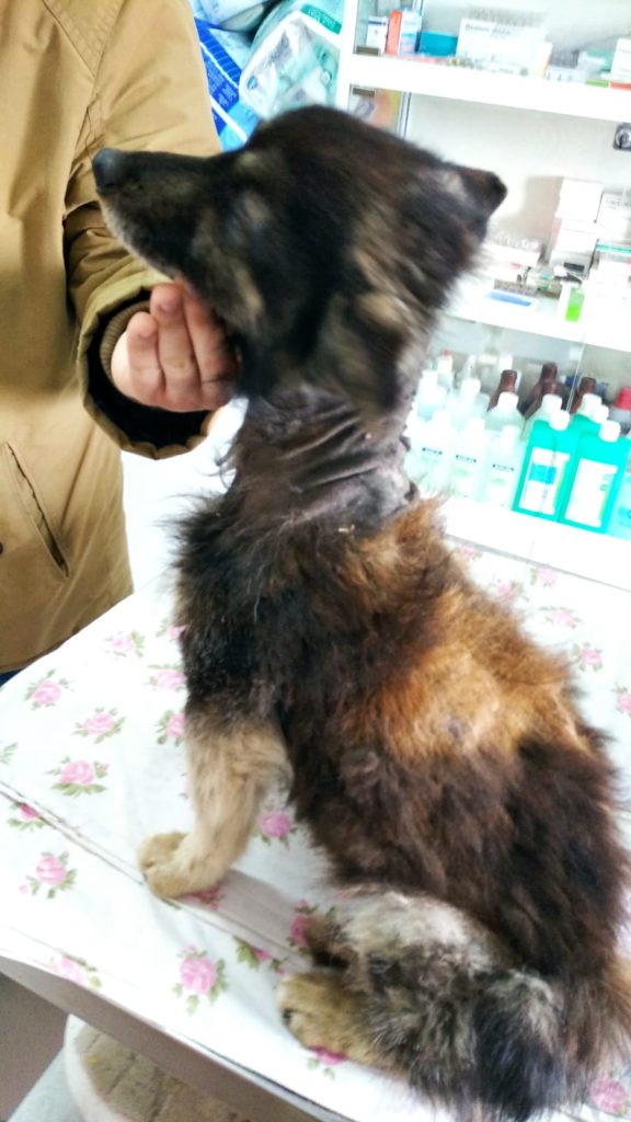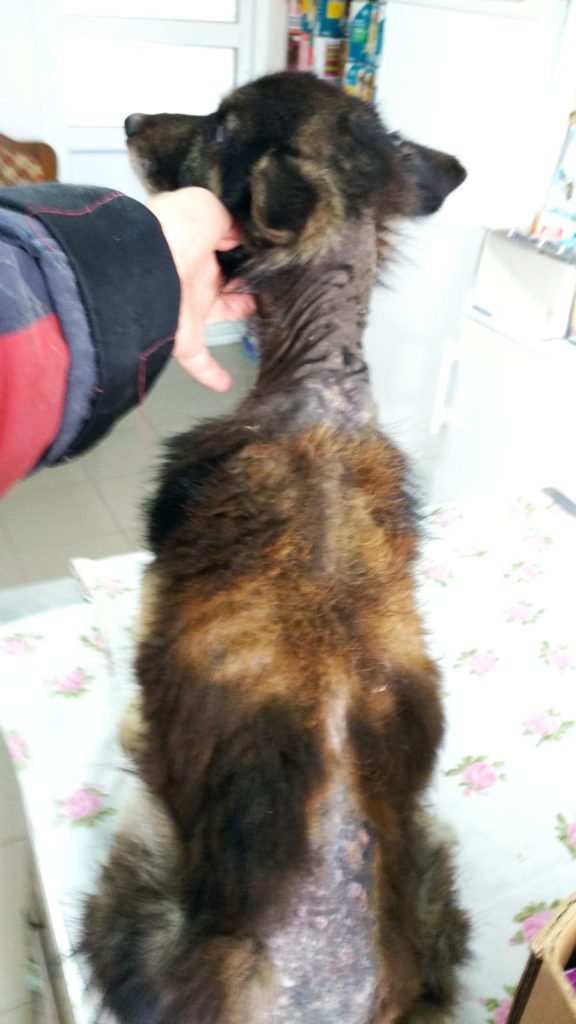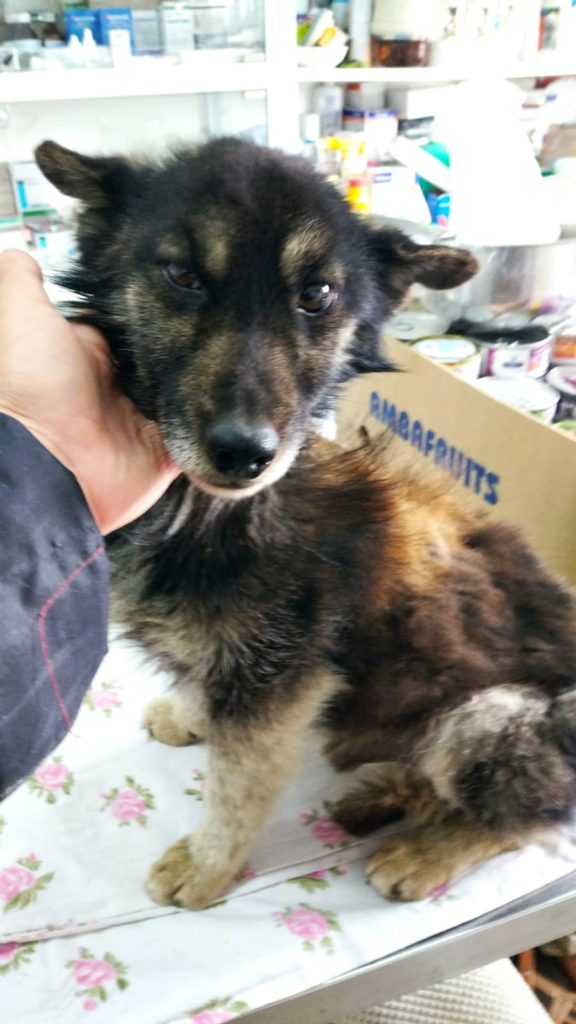 Diese Woche mussten wir ja wieder einige Hunde aufnehmen, ganz schlimm ist dieser Fall hier. Den kleinen Hundemann hat heute unsere Natasha vor dem Heim gefunden. Er hat ganz schlimme Verletzungen, dazu eine Hauterkrankung und ist nur noch Haut und Knochen. Unser Tierarzt hat sofort die Erstversorgung der Wunden gemacht  und dann wurde er in die Quarantäne gebracht. Dort gab es dann erst einmal was zum fressen – was hatte der kleine Kerl für Hunger – und nun darf er sich ausruhen in Sicherheit. Jetzt müssen wir ganz fest die Daumen drücken, dass der kleine Mann es schafft. Was diese Tiere immer aushalten müssen und trotzdem haben sie das Vertrauen in uns Menschen noch nicht ganz verloren. Man hatte den Eindruck, dass Nemo wusste, dass die Hilfe hier seine letzte Chance ist. Lange hätte er in diesem Zustand nicht mehr überlebt.