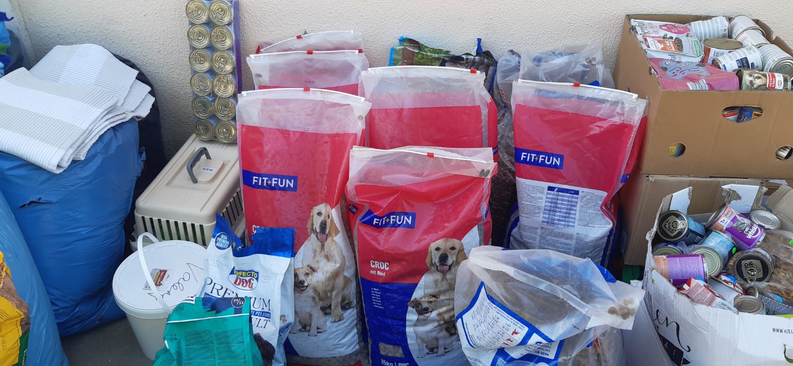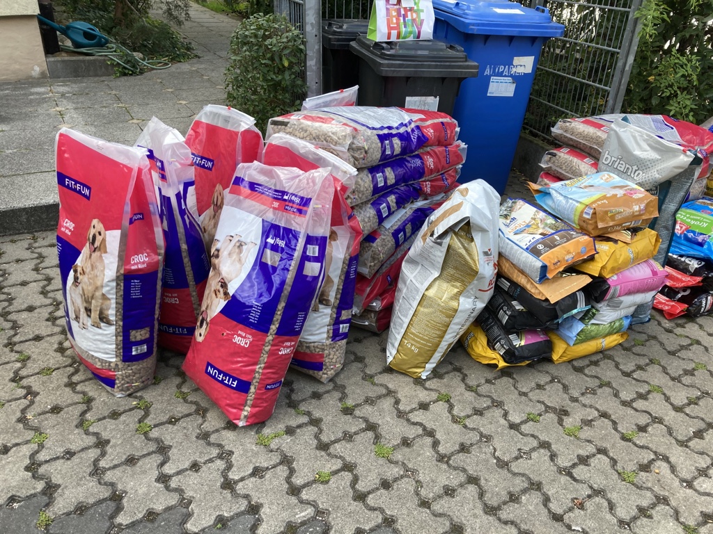 inzwischen konnten wir – zwar in Etappen, aber immerhin kam es über die Grenze – ganz viel Futter in unsere Casa bringen. Wir bedanken uns ganz herzlich dafür, dass unsere Hunde ihre Bäuchlein füllen können.