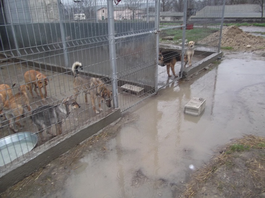 wie viel in unserer Casa noch zu machen ist, zeigt sich gerade hier an den Bildern. Es hat tagelang in Moldawien geregnet und unsere Hunde stehen bis zu den Knöcheln in kaltem Matsch. Hier müssen dringend Drainagen gezogen werden, damit das Wasser abfließen kann und ein Großteil der Zwingeranlagen muss betoniert werden, da bei anhaltendem Regen sich alles in rutschigen Matsch verwandelt.