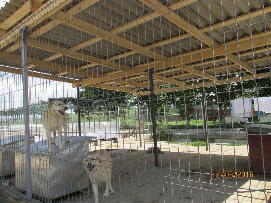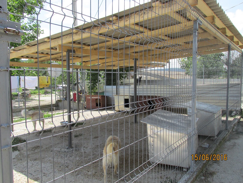 So, wieder was geschafft. 3 große Gehege waren noch ohne Dach. Da es dort keine Möglichkeit gab, Dächer wo „aufzulegen“, mussten komplette Stützen einbetoniert werden, wo die Dächer befestigt werden konnten. Dies hat diese Bauarbeit natürlich verteuert. Aber wir sind sehr froh, dass wir das jetzt noch vor der Hitze geschafft haben, da die Hunde in diesen Gehegen keine Möglichkeit hatten, sich irgendwo in den Schatten zu legen und wirklich den ganzen Tag die Sonne darauf scheint. Es geht immer alles nur schrittweise, aber wir freuen uns über jeden  neuen Fortschritt, der es einfach für unsere Hunde leichter macht. Danke an Frau T., die das durch ihre Spende ermöglicht hat.
