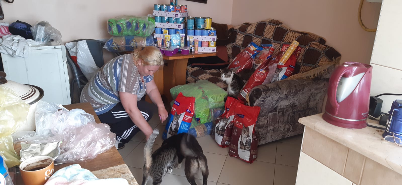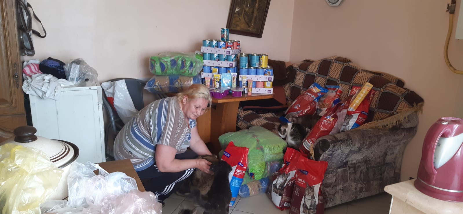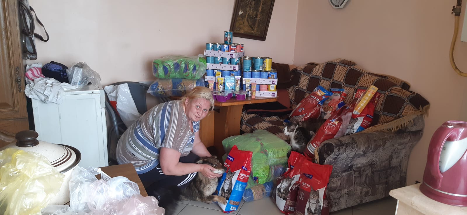 Ludmilla und Galina: Um das Tierheim von Ludmilla gibt es ja leider derzeit einige Querelen. Wir halten uns da raus, können aber – wenn wir einen Hilferuf bekommen – auch nicht einfach wegsehen. Als es jetzt hieß, dass nicht mal für das Schwein mehr Futter da ist, ist unser Sergiu hingefahren und hat auch wieder Futter gebracht. Unser Tierarzt ist mitgefahren, weil wohl auch keine Medizin für einen kranken Hund da sei und dabei hat er festgestellt, das ca. 25 Katzen nicht kastriert sind, was ja zu unkontrolliert Vermehrung führen würde. Wir hatten angeboten, den Hund zu übernehmen, aber das wollte man nicht. Also hat Artiom ihn vor Ort versorgt und Medizin für ihn da gelassen und hat bereits die ersten Katzen auf unsere Kosten kastriert. Die alte Galina (94 Jahre) haben wir wieder mit aufgenommen, da sie auch um Futter für ihre Tiere gebeten hat. Wir kennen sie schon seit unserem Start in Moldawien. Sie versorgt noch um die 20 Tiere sowie einige Straßentiere.