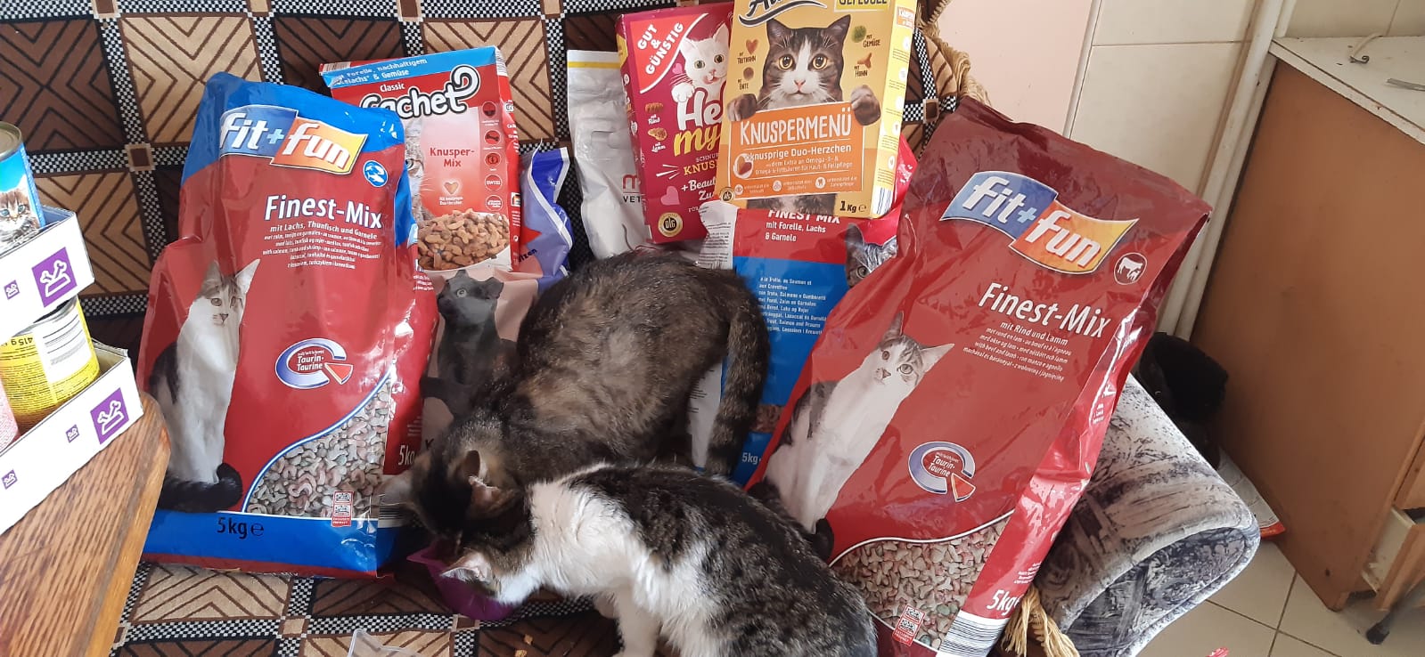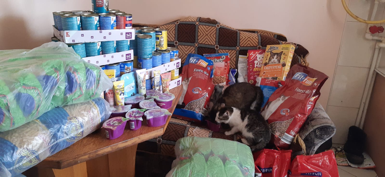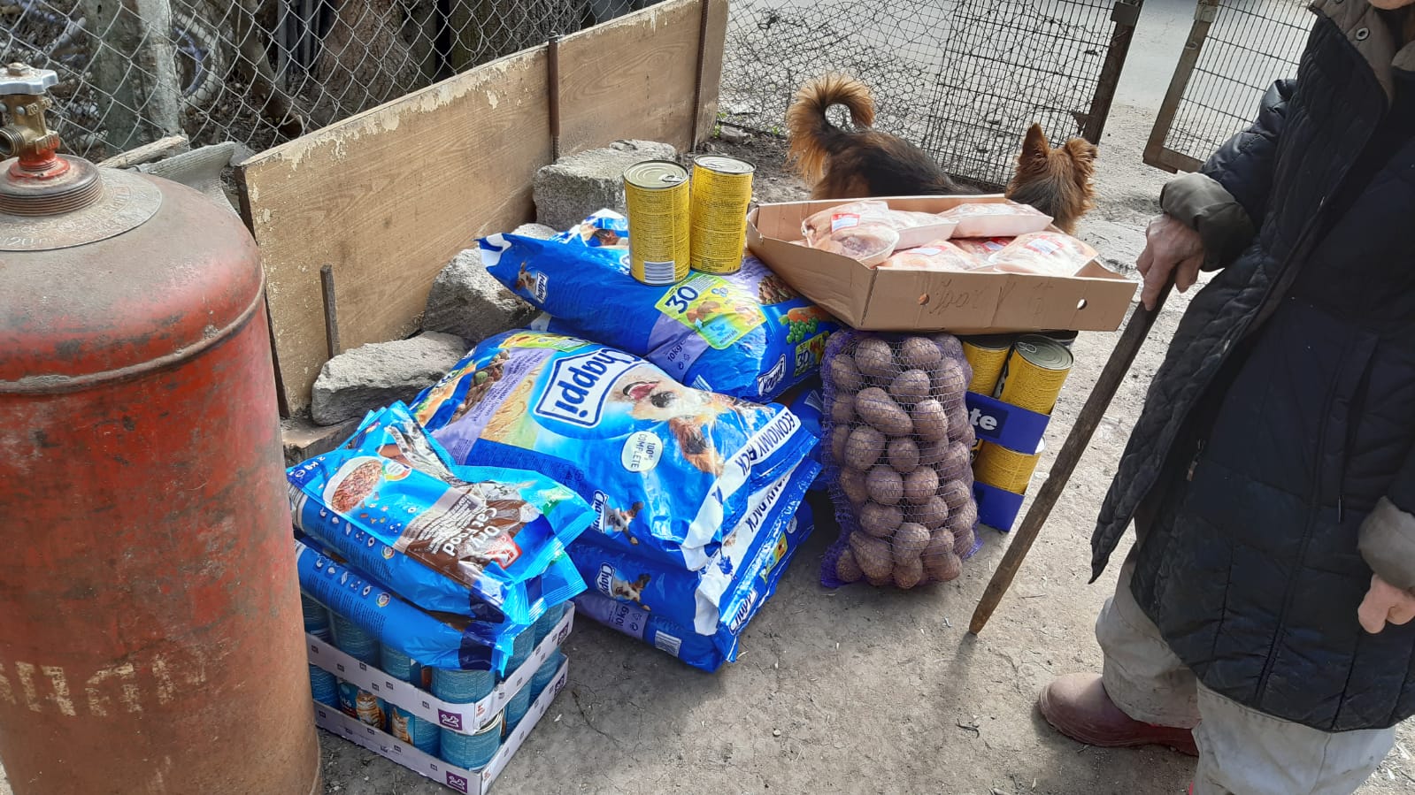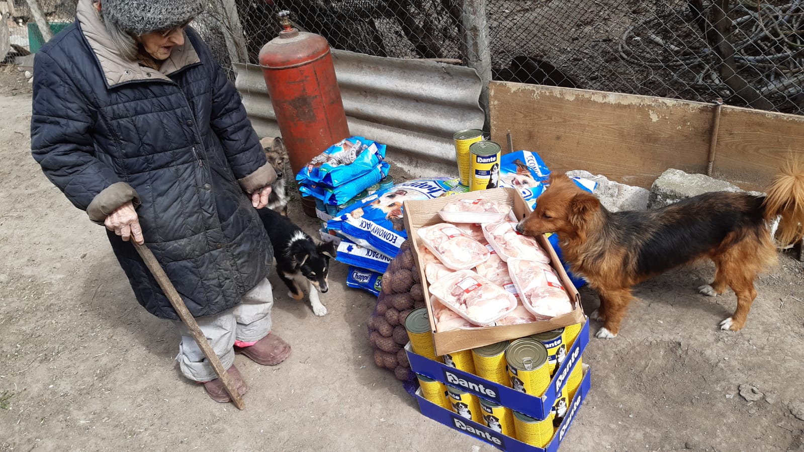 BigBoys: Die BigBoys versorgen wir ja schon längere Zeit mit Futter, Knabbersachen und Stroh im Winter. Diese wunderbaren Wesen leben in einem furchtbaren Platz und Valery versucht, so oft es geht, ihnen Futter zu bringen. Seit Corona darf sie nicht mehr zu ihnen. Sie hat mir jetzt aber geschrieben, dass sie Futter für sie abgeben darf. Leider ist einer von den Hunden seinem Krebs erlegen (darf gar nicht dran denken, er musste ausharren, bis der Tod ihn erlöst hat). Aber wenigstens kann sie wieder etwas Futter hinbringen.