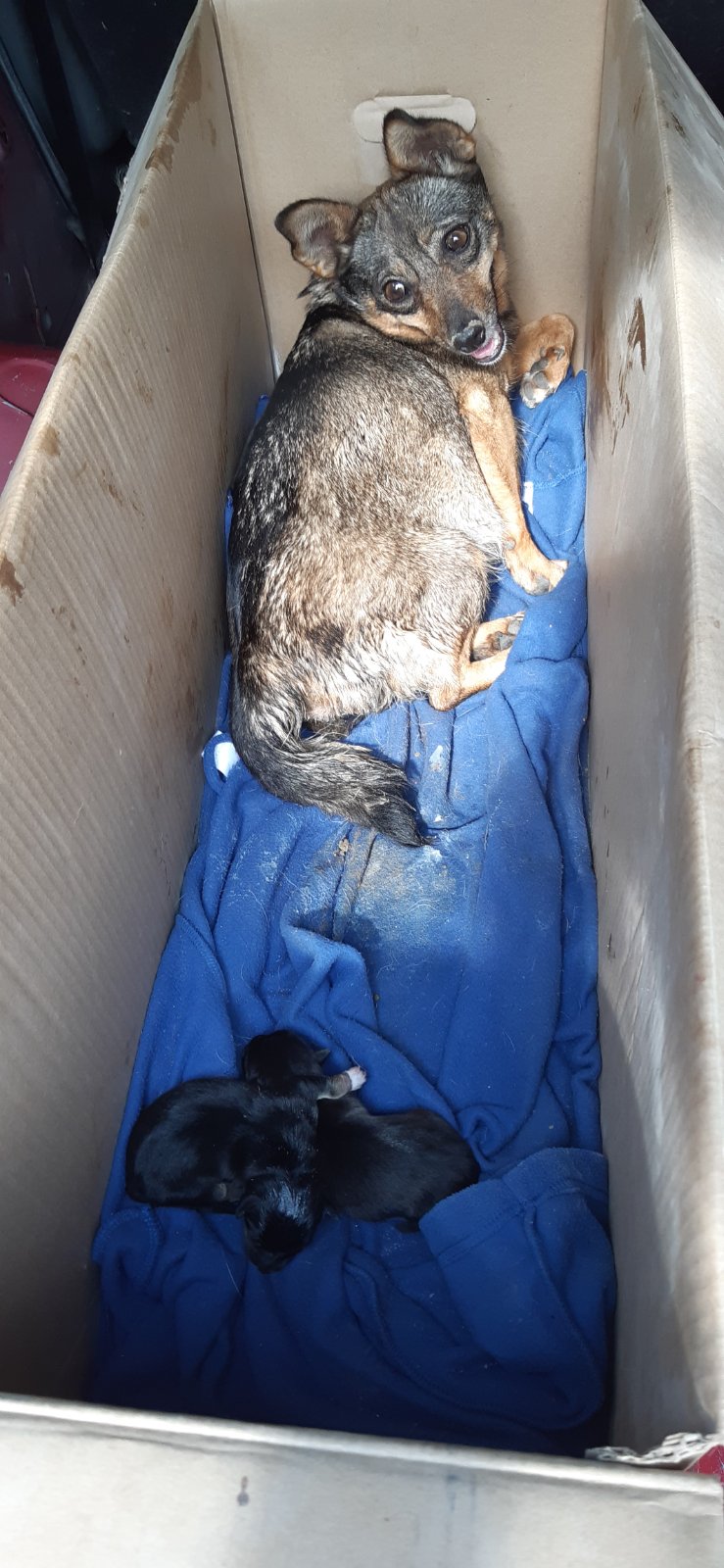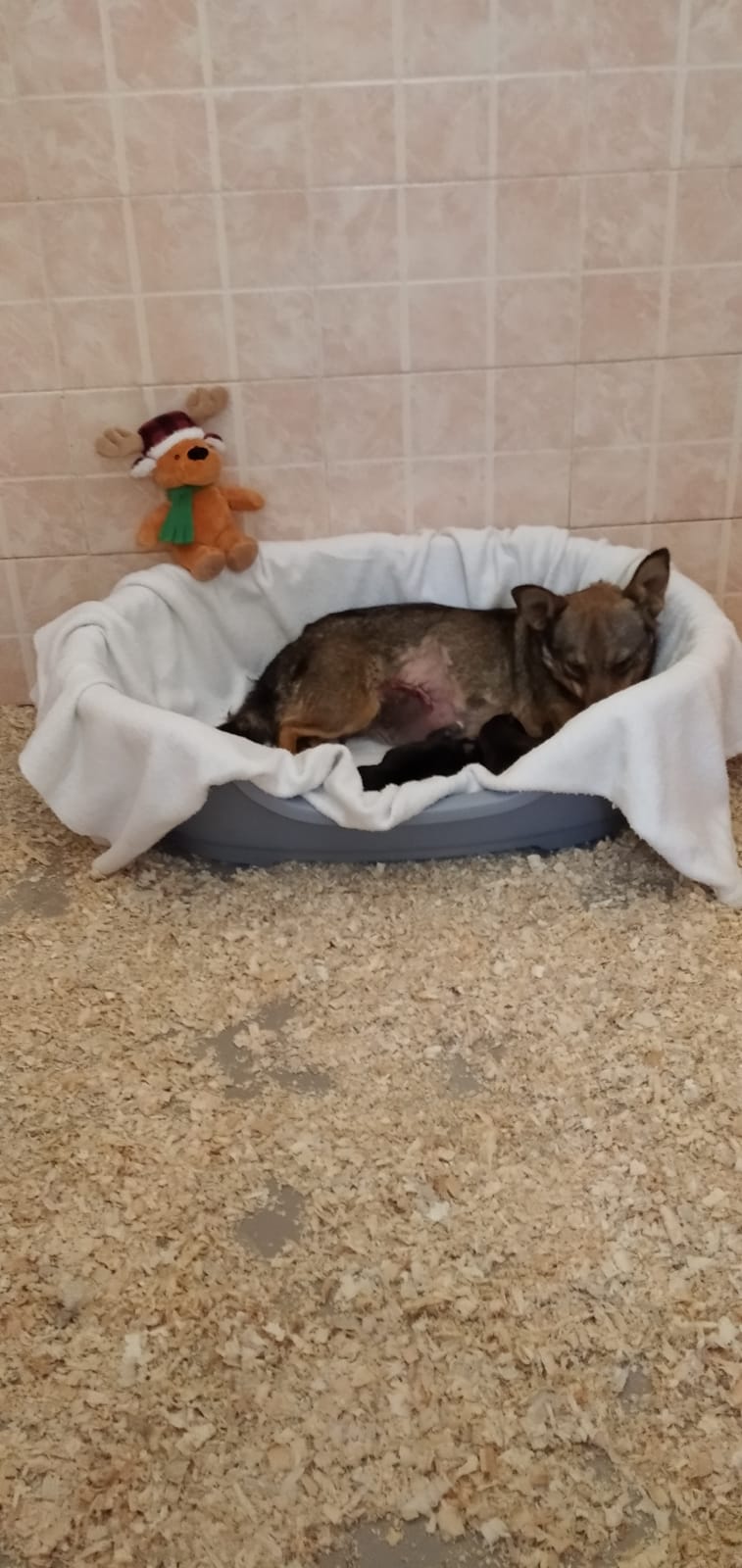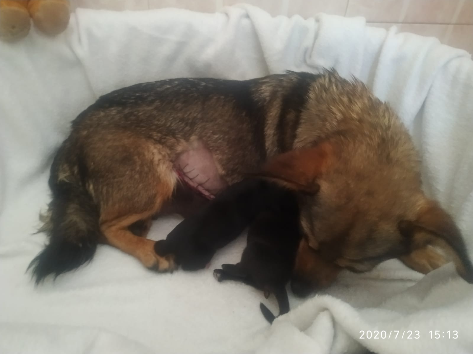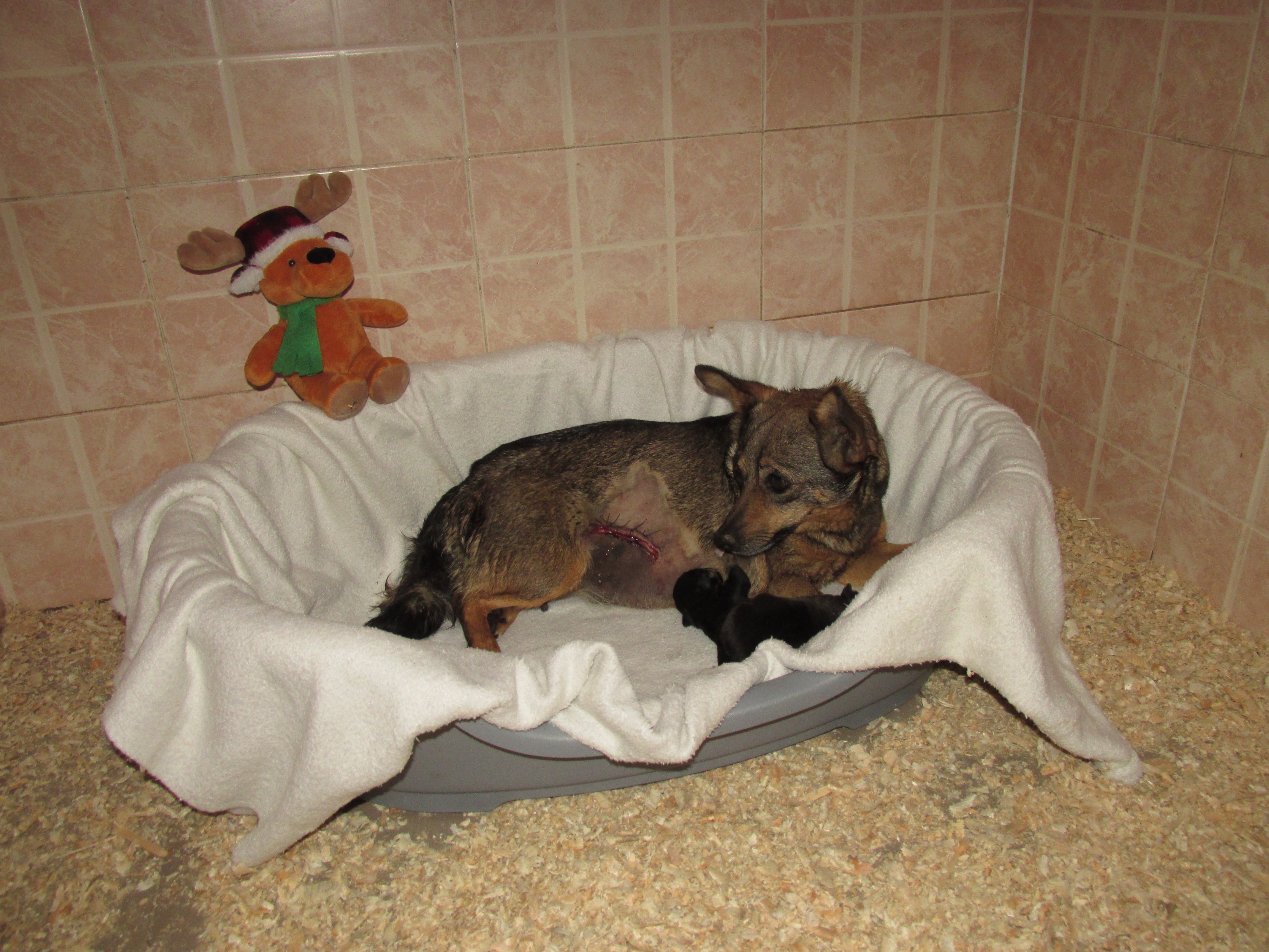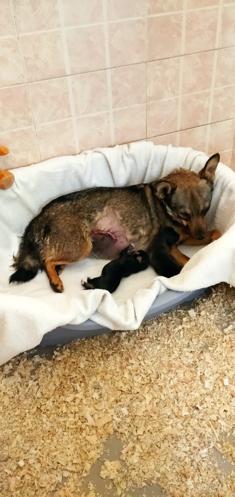 Heute haben wir ein – nein 3 – neue Hunde ins Heim aufgenommen. Vor 2 Tagen haben wir einen Notruf gepostet gesehen, dass eine hochträchtige Hündin rumläuft. Die Leute bewerfen sie noch mit Steinen und haben gedroht, sie umzubringen. Natasha hat sich mit der Frau, die den Notruf gepostet hat in Verbindung gesetzt und heute früh hat diese sich gemeldet, dass sie die Hündin gefangen hat. Als Sergiu hinkam, hat der Geburtsvorgang bereits angefangen. 2 Babies waren schon da, ein 3. leider tot. Ein weiteres konnte sie nicht gebären, es war zu groß und steckte fest. Sergiu brachte die kleine Hündin samt Welpen in die Klinik, wo sie sofort operiert wurde. Leider war das 4. Baby auch tot. Inzwischen ist die kleine Mami mit ihren 2 Babies (1 Bub, 1 Mädchen) in unserer Casa und kann sich von den Anstrengungen erholen. Wir hoffen so sehr, dass die Babies überleben, das eine ist ziemlich schwach. Ein ganz großes Dankeschön möchte ich hier an unser Team in Moldawien aussprechen, die durch ihr schnelles Handeln wahrscheinlich das Leben der Hündin und damit auch ihrer Babies gerettet haben.