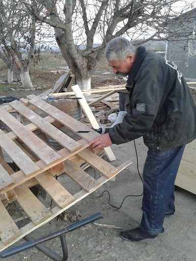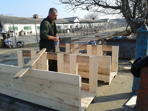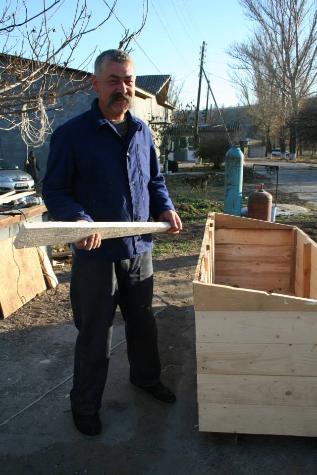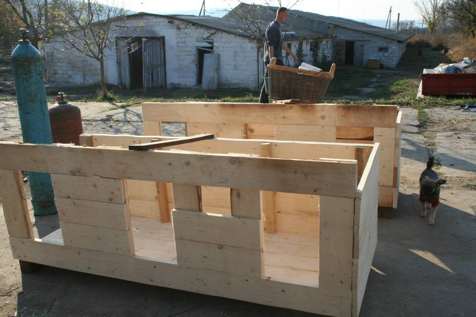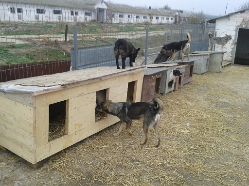 Am nötigsten waren noch einige Hundehütten, da teilweise für nicht alle Hunde eine Möglichkeit bestand, sich in eine Hütte zu kuscheln, gerade bei den Ausläufen, die kein festes Haus dabei haben. So hat Marion spontan Geld gespendet und Vasile hat dann am nächsten Tag gleich Holz davon gekauft. Während unserer Anwesenheit wurden noch 2 3er-Hütten fertig, die in die Ausläufe gebracht wurden, wo sie am notwendigsten waren. Da fällt einem gleich ein Stein vom Herzen, wenn man das sieht und weiß, dass es nun wieder einige Hunde wärmer haben. Allerdings werden noch viel mehr Hütten gebraucht. Auch müssen in einige Häuser einfachere Hütten, da der Beton einfach zu kalt ist, um im Winter darauf zu liegen. Wir haben zwar mit viel Stroh alles ausgelegt, aber die Kälte zieht trotzdem rein, gerade bei den kurzfelligen Welpen werden noch unbedingt Hütten gebraucht.