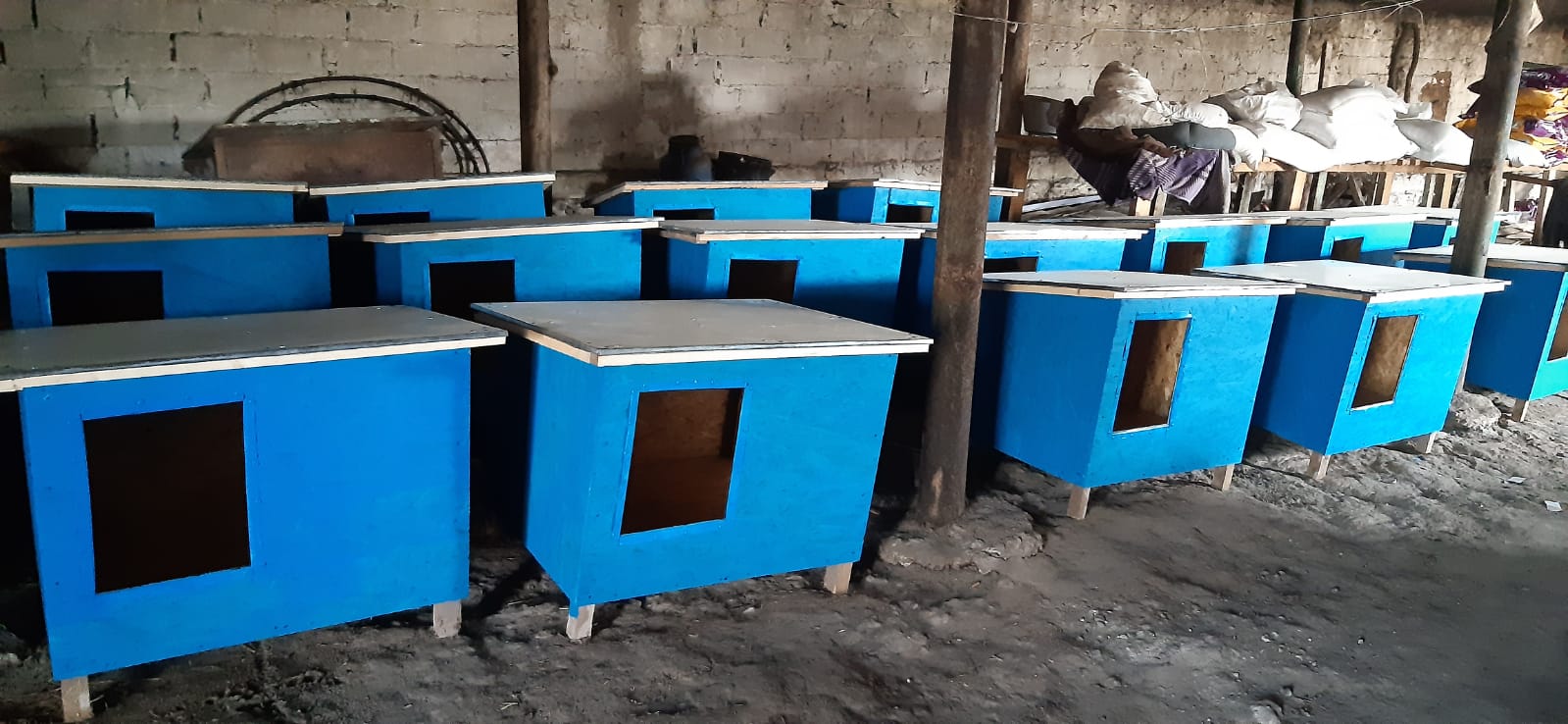 Wir müssen ja ständig neue Hunde in unserer Casa aufnehmen, derzeit sind es fast 450. Wir haben nochmals neue Gehege gebaut bzw. ausgebaut und nun brauchen wir für die neuen Hunde natürlich auch neue Hütten. Unsere Arbeiter waren sehr fleißig und 40 Hütten konnten sie fertig stellen. Die Preise in Moldawien sind sehr gestiegen, eine fertige Hütte kostet inzwischen ca. 100, €, da das Material sehr teuer geworden ist. Unsere Arbeiter haben die Hütten selbst gebaut, so dass wir nur das Material kaufen mussten und den Arbeitern einen Lohn für die Freizeit, die sie für die Hüttenarbeit hergeben mussten. Wir sind sehr froh, dass nun unsere Hunde im Winter ein Dach über dem Kopf haben.