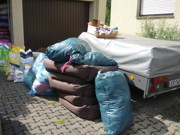 Am Wochenende fuhr unsere Marion nach Moldawien und wir konnten das ganze Auto „buchen“ und voll laden mit Spenden für unsere Casa. Neben vielen Hundekörben, -betten und –boxen ging endlich auch ein gespendeter Röntgenbildbetrachter und ein Ultraschallgerät zur Zahnreinigung für unseren Tierarzt sowie Decken, Verband- und Nahtmaterial, Spot-ons und natürlich Futter – auch Katzenfutter für die Straßenkatzen –  auf die Reise. Auch für den lieben Victor war wieder eine große Tasche mit gutem Futter und Aufbaupräparaten dabei. Und natürlich ganz viele große Kauknochen für unsere ehemaligen Kettenhunde, damit sie gut beschäftigt sind.