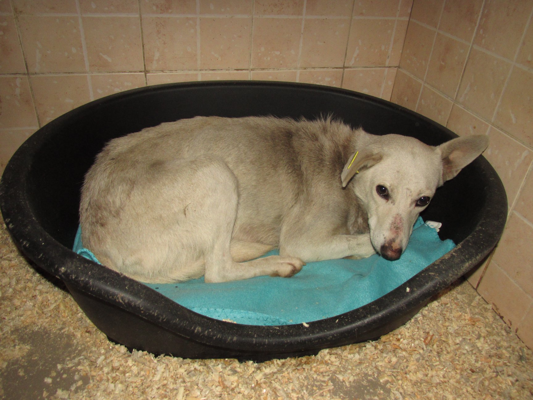 Hier stellen wir Ihnen unsere „Namensvetterin“ Andrea vor. Unser Manager hat sie im Dezember 19 aus dem Todeslager herausgeholt, weil es ihr gesundheitlich schlecht ging und sie bei uns behandelt werden sollte. Natürlich ist sie geblieben. Was Andrea vorher erlebt hat oder auch im Todeslager mit ihr geschehen ist, verrät sie uns nicht. Wir wissen nur, dass sie von Anfang an sehr scheu war. Sie wird langsam etwas besser, aber es wir noch ein langer Weg, bis sie wieder vertrauen wird. Andrea ist zwischen 3 – 5 Jahre alt (Stand 2022).