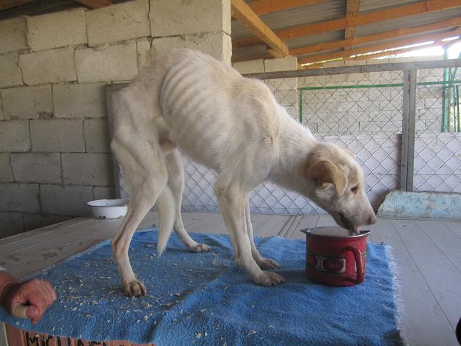 Malichik kam mit schwersten Kopfverletzungen in unser Heim. Er konnte nicht mehr fressen. Natasha hat sich liebevoll um ihn gekümmert, hat ihn in milch aufgelöstes Brot und Brühe gefüttert, aber er konnte nichts mehr