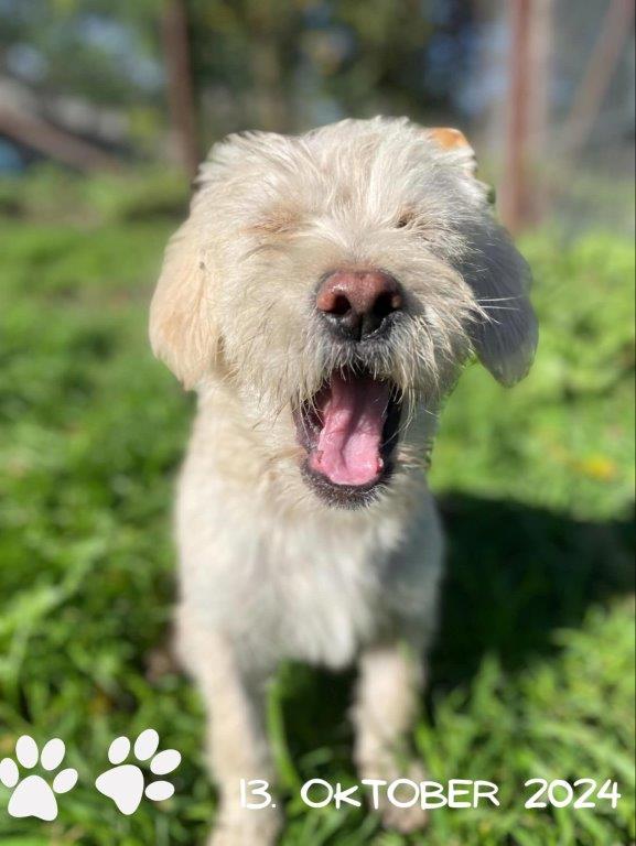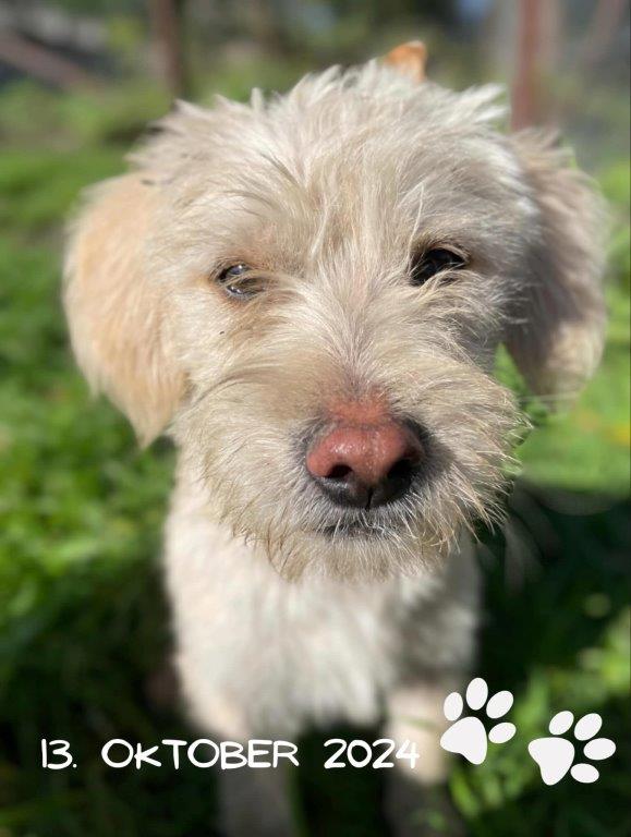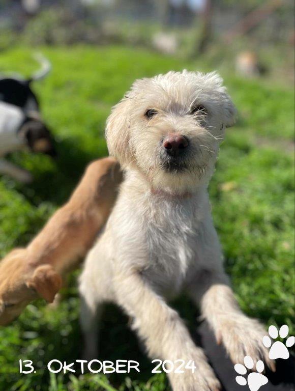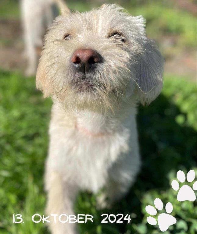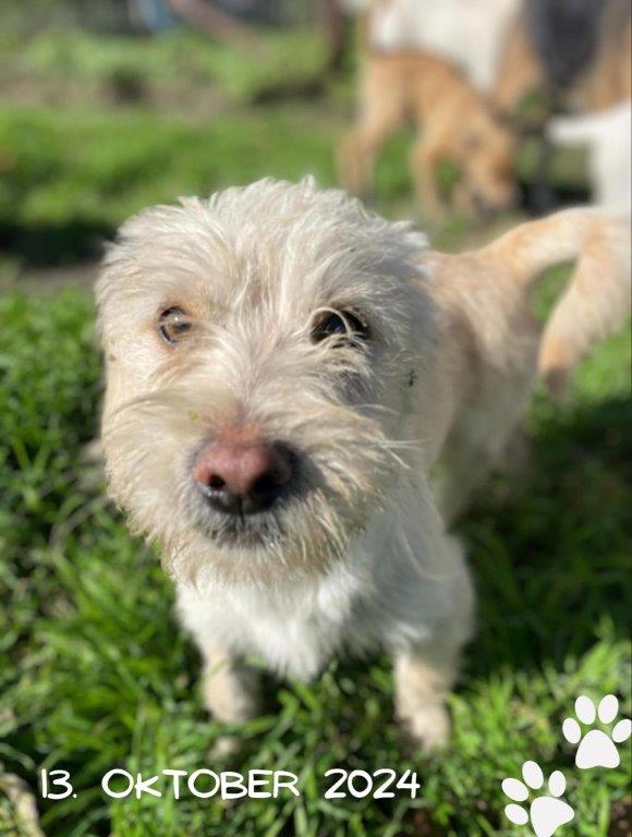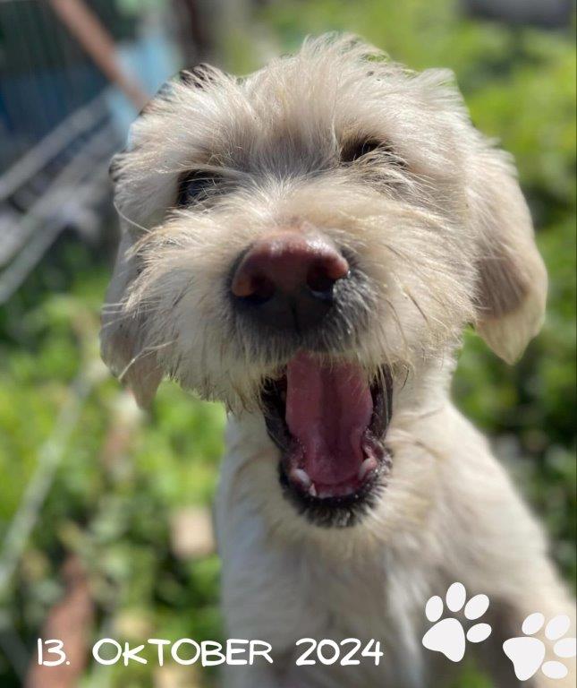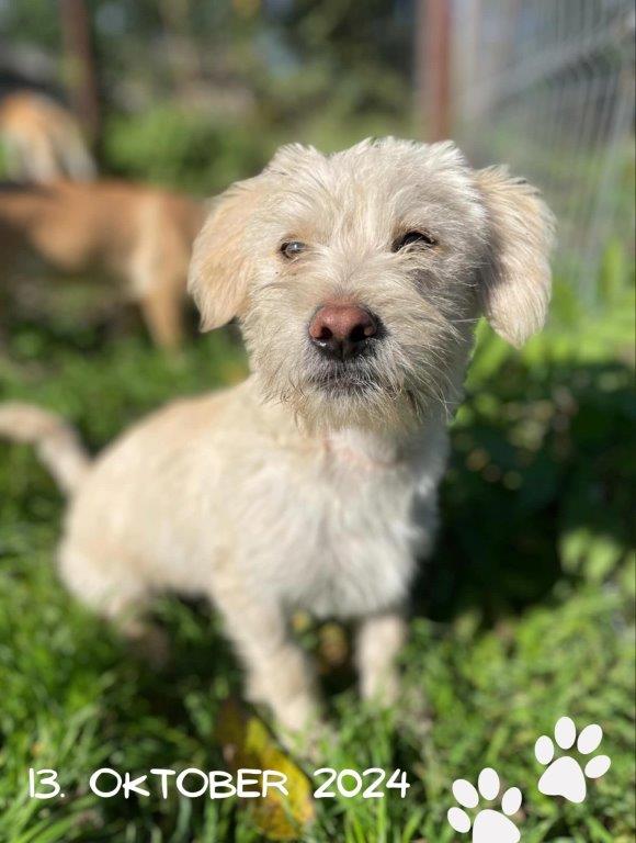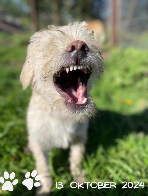 Hoppla, hier kommt unser kleiner Clown BENJI. Eigentlich könnte er am Boden zerstört sein – aber nichts da!! Am 10. Oktober, dem Welthundetag, stolperte BENJI in unser Leben. Also eigentlich erst vor ein Auto, dem er nur knapp entkam. Das sah unsere rumänische Freundin im Gegenverkehr und da gab es kein Zögern. Raus aus dem Auto, den kleinen Zausel unter den Arm klemmen und einstecken!! Ein Glückstag also für den kleinen Mann, der sich dann auch sofort in der Pflegestelle eingelebt hat und uns das Gefühl gibt immer schon da gewesen zu sein. Auch die Gruppe hat ihn aufgenommen und er kommt mit jung und alt perfekt zurecht. Zwei Tage später musste er dann auch schon seinen ersten Termin beim Tierarzt bewältigen, um die erste Impfung zu erhalten – auch dort hat er alle begeistert. BENJI ist heute 5-6 Monate jung und nach all dem Glück, das er nun schon hatte wünschen wir uns für den kleinen Mann jetzt noch seine Familie. Das wäre so toll und wir wollen daran glauben, dass das Glück weitergeht! Jetzt möchte er auf Körbchensuche gehen und Dich und Deinen Familie im Sturm erobern.
