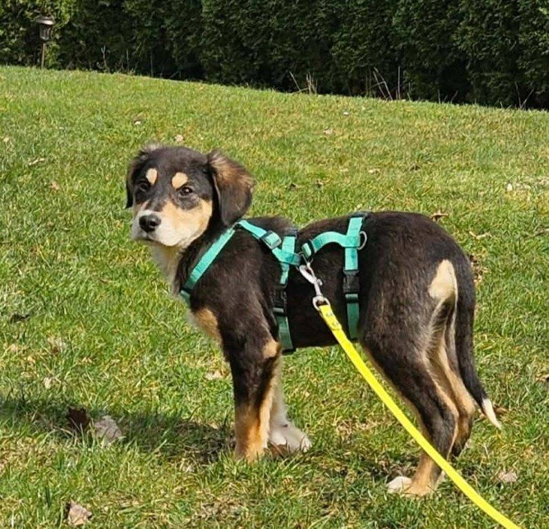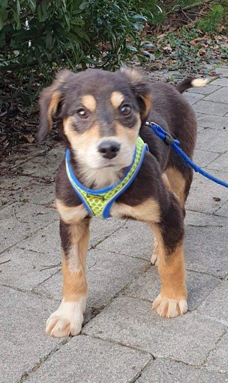 Brady kam aus dem öffentlichen Shelter in Rumänien. Anfangs etwas schüchtern und k.o. von den Strapazen der letzten Tage, sieht die Welt heute schon besser aus.