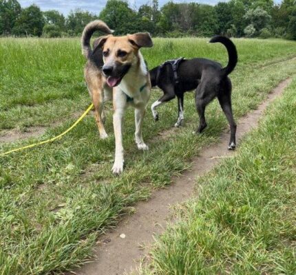 <3 aktuell auf Pflegestelle in München <3 Cookie , geb. 04/23, unkastriertes Hundemädchen mit ca. 18 Kilo und ca. 53 cm. Sie kam im November 2023 nach Deutschland und lebt aktuell mit einer weiteren Hündin