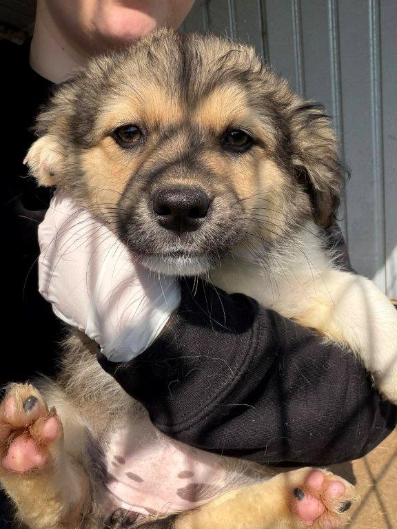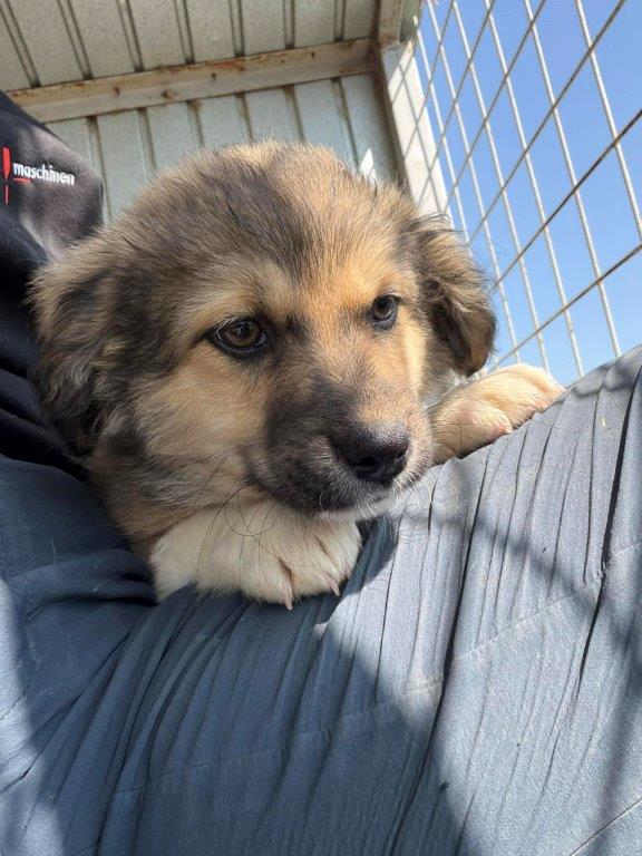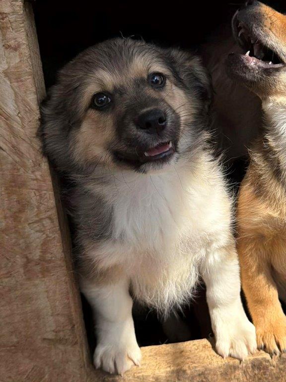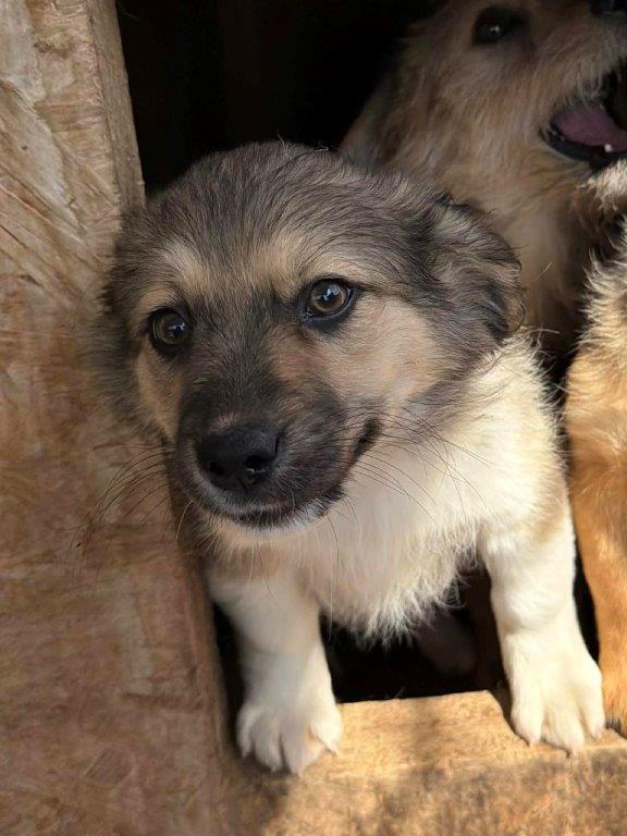 Wir sind DAISYS Mädels Dani(w), Dina(w) und Daria (w)(aktuell um 12 Wochen alt) und durften zum Glück mit unserer Mama DAISY zusammen bleiben. Leider mussten wir ins städtische Shelter ziehen und das Leben hier ist echt hart. Mama gibt wirklich ihr Bestes, aber es ist sooo laut. Der Betonboden ist eisig und unsere Füßchen tun so unglaublich weh. Wir versuchen uns in der Hütte immer zusammen zu kuscheln, aber ohne Stroh oder Decken wirds da auch nicht wirklich wärmer. Zum Glück wurden wir jetzt gesehen und dürfen bald mit unserer Mama zusammen auf Pflegestellen ausreisen. Da sind wir sehr froh. Wir werden keine Reisen werden(+/- 40cm), ca. wie unsere Mama. Ein paar Wochen müssen wir aber noch durchhalten, denn wir bekommen noch einen extra Pieks, dass wir auch ausreisen dürfen und alt genug müssen wir auch sein, sagt Mama. In ca. 4 Wochen dürfen wir uns dann auf die lange Reise nach Deutschland machen und es wäre so toll, wenn da jemand auf uns warten würde. DU vielleicht???
