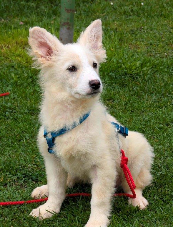 Spielsachen findet er ganz toll, da kann er sich auch schon mal alleine beschäftigen. Stubenrein ist er natürlich noch nicht, wobei erfreulicherweise bereits einige Geschäfte im Garten erledigt werden. Bei Fremden ist er Anfangs ein wenig schüchtern und zurückhaltend, aber nicht ängstlich. Er folgt einem auch schon selbstständig mit in den Garten und selbstverständlich auch wieder mit rein. Kuscheln und Streicheleinheiten findet er immer toller. Jetzt suchen wir die Menschen, die ihm mit Geduld und Liebe das Hunde 1×1 beibringen. Die sich auch bewusst sind, dass Welpen in dem Alter noch nicht alleine bleiben, viel Aufmerksamkeit benötigen und hin und wieder etwas Anknabbern.