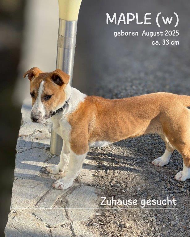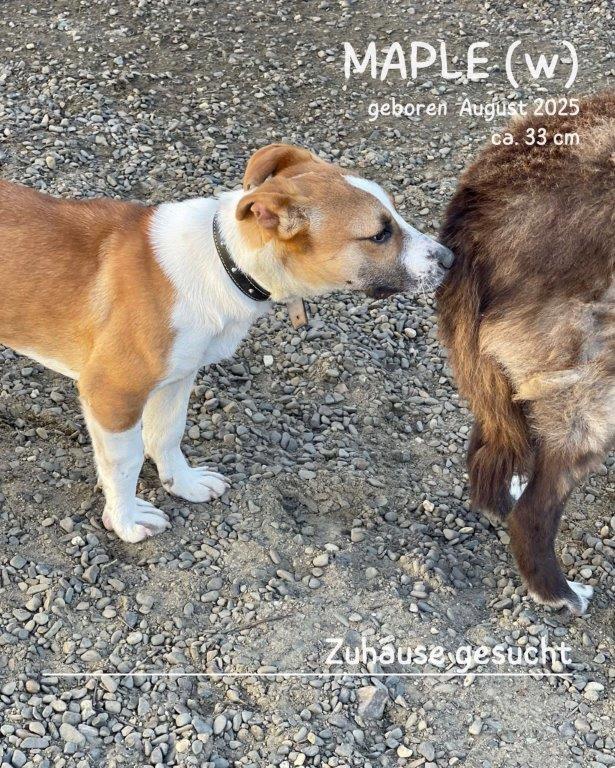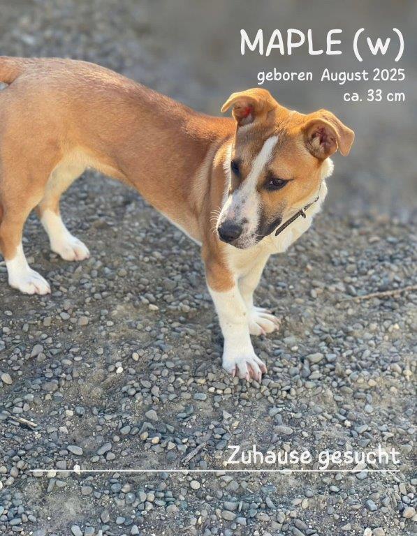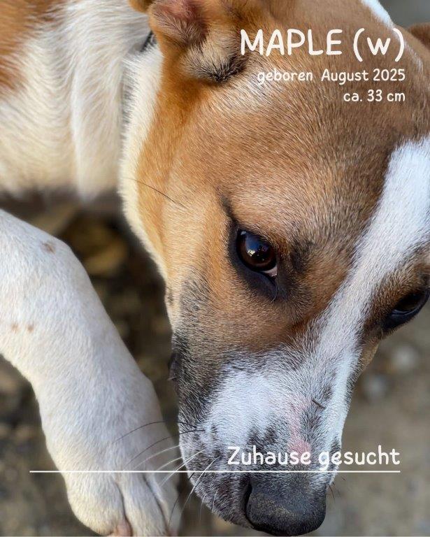 Die kleine Maple ist etwa 7 Monate alt (geboren im August 2025) und stammt – wie so viele unserer Schützlinge – aus Rumänien. Ihre genaue Herkunft kennt niemand. Sie wurde von aufmerksamen Menschen gemeldet und von Tierschützern gesichert, obwohl die Plätze eigentlich längst erschöpft sind. Doch irgendwie wird immer noch zusammengerückt, um auch solchen Seelen eine Chance zu geben.