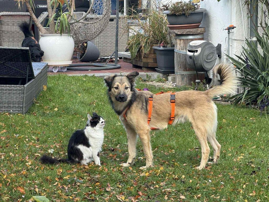Hier möchten wir den bildhübschen Marley, geb.01.02.24, ca.55 cm groß vorstellen. Auf seiner Pflegestelle mit 5 Katzen und einem anderen Rüden, zeigt er sein offenes und sehr freundliches Wesen. Er ist absolut katzen-und hundefreundlich. Er ist sehr brav beim Spazieren gehen, Autofahren und bellt nicht. Marley ist neugierig und aufmerksam und macht bisher alles mit. Ein richtig toller Hund, der viel Freude ausstrahlt. Menschen findet er auch ganz toll, er genießt Aufmerksamkeit und Krauleinheiten sehr. Wer einen lieben und sehr lebensfrohen Hund an seiner Seite möchte, ist bei ihm genau richtig. Er eignet sich auch super als Zweithund.