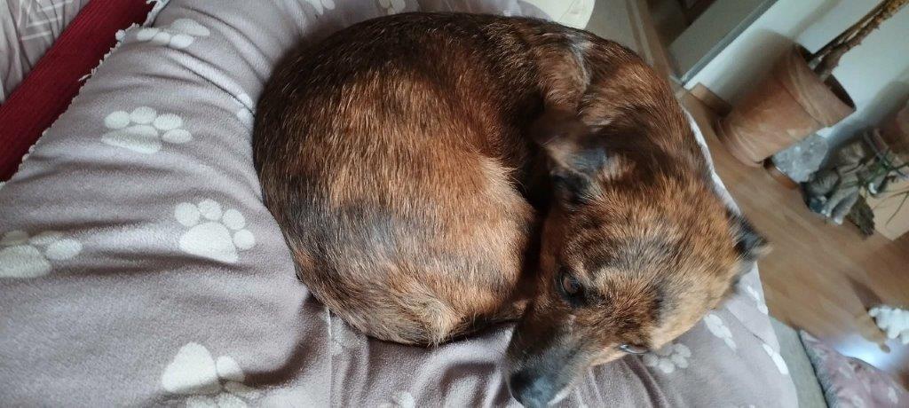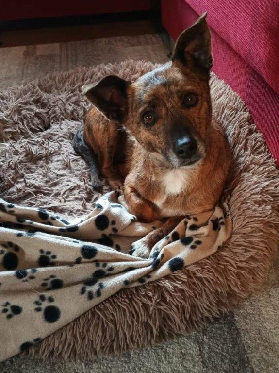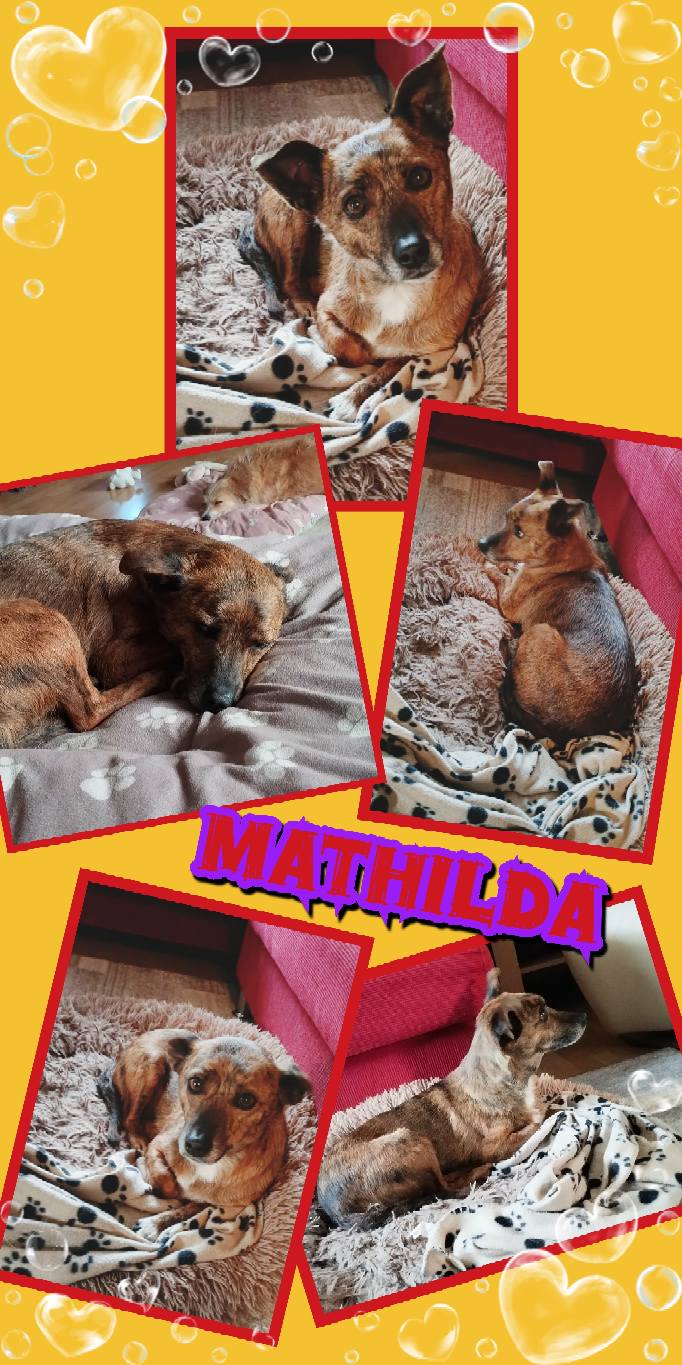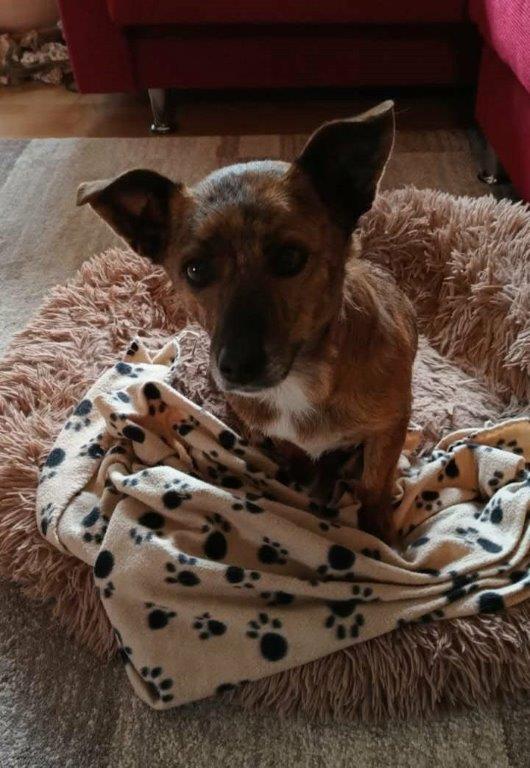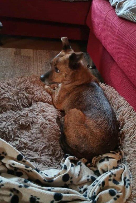 Hallihallo, mein Name ist Mathilda, geb. 01.12. 18 (bin aber laut Doc ca. 4-5 Jahre alt) und 30 cm klein und mit 10 kg aktuelle ein bisschen schwer. Aber ich habe schliesslich erst Welpen gehabt, wir arbeiten bereits an meiner Taille. In meiner Pflegestelle lebe ich zusammen mit meinen Pflegeeltern und einer knapp 3-jährigen Hündin problemlos zusammen. Kaum ein paar Minuten in meinem neuen Zuhause angekommen, habe ich neugierig alle Zimmer inspiziert, gegessen, getrunken und da ich ein bisschen gestunken habe, habe ich auch gleich ein ausgiebiges Bad genossen. Mein Pflegefrauchen sagt ich bin einfach nur sehr lieb und sanft. Ich genieße es gestreichelt zu werden, lasse mich hochheben und fahre im Auto super mit. Zuhause bin ruhig und stelle nichts an. Wenn Pflegefrauchen z.B. im Bad ein paar Minuten ist, bleibe ich brav auf meiner Decke liegen. Ich habe keine Angst vor Alltagsgeräuschen, war ab Tag eins stubenrein, lasse mir mein Geschirr problemlos anziehen und laufe schon gut an der Leine mit. Ich lasse mein Fell bürsten und auch meine Zähne und Ohren ganz brav anschauen. Ich bin nicht sehr groß, daher kannst Du mich überall gut mitnehmen (vielleicht auch zu Deinem Arbeitsplatz?), ich bin klein und passe unter jeden Tisch.