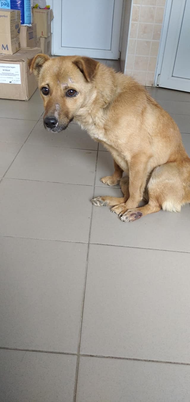 Unsere hübsche Mirnaia hat das leider oft so typische Schicksal erlebt. Sie wurde angefahren und liegengelassen. Eine Frau hatte Mitleid mit ihr und brachte sie zu uns in die Casa. Unser Artiom hat zwar sofort mit der Behandlung angefangen, aber leider kann sie nicht mehr laufen. Mirnaia ist sehr freundlich und lebhaft, möchte sich bewegen. Unsere Pflegerin hatte sich Gedanken gemacht, wie sie ihr helfen kann und hat zusammen mit einem Pfleger für sie selbst einen Rollwagen gebaut. Die Behandlung von Mirnaia geht weiter, aber leider besteht nicht allzu viel Hoffnung, dass sie jemals wieder laufen kann. Mirnaia ist mit allen Hunden freundlich und so darf sie immer wieder tagsüber mit der Freilaufgruppe mit laufen. Mirnaia würde sich sehr über Paten freuen, die sie auf ihrem Weg begleiten und auch an sie denken.