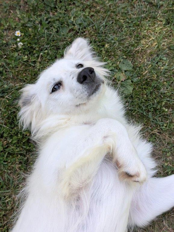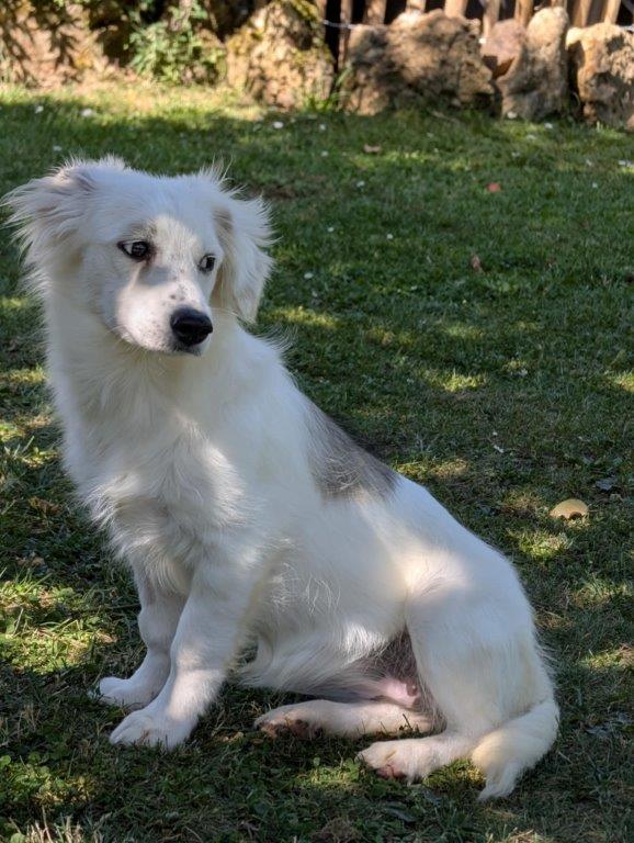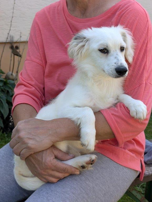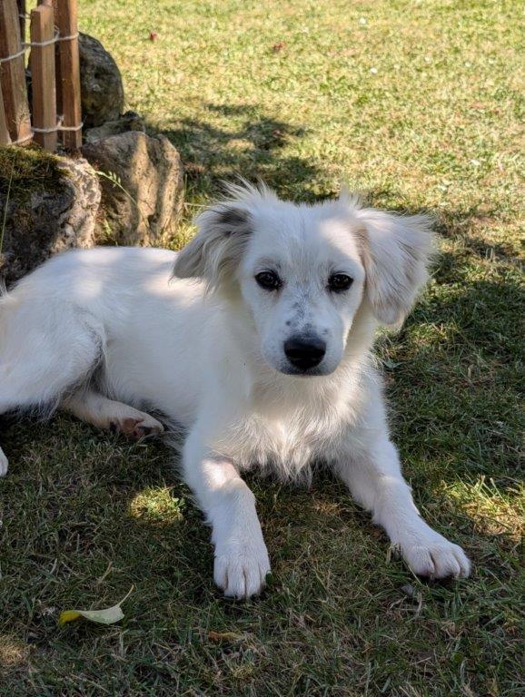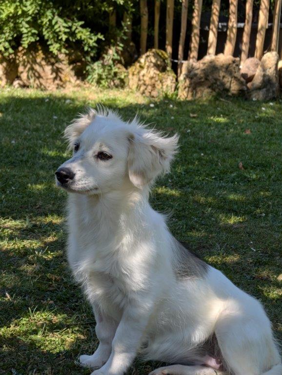 Moon ist ein Sonnenscheinchen, hat uns gleich bei Ankunft bereits alle um die Pfote gewickelt, da sie sehr offen und freundlich auf jeden zugeht . Sie ist neugierig, lustig und verspielt, wie ein Welpe eben so sein sollte und hat ihren schweren Start in Rumänien längst vergessen.