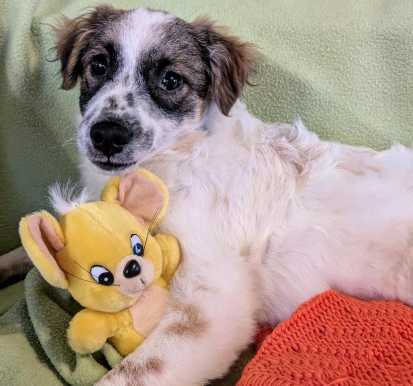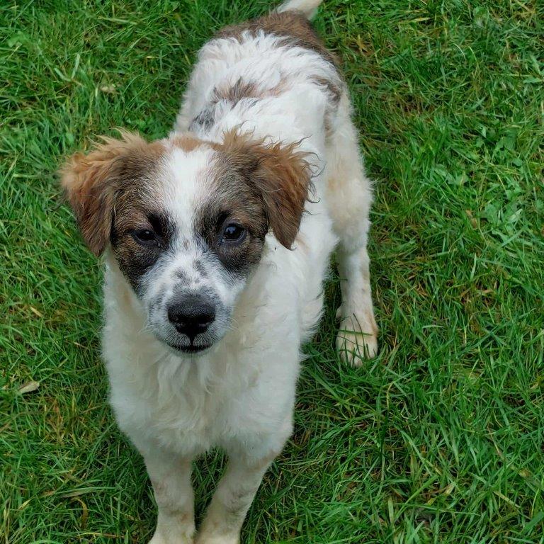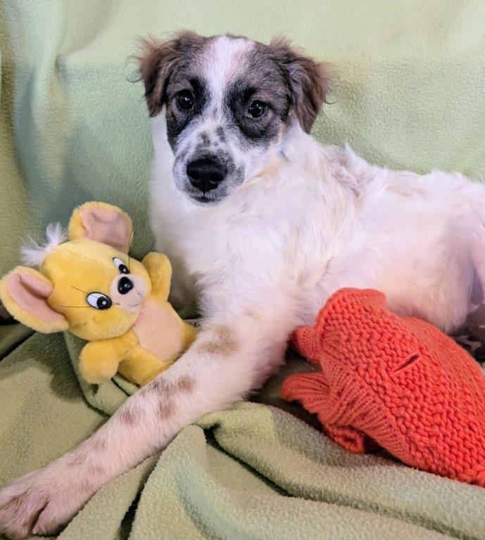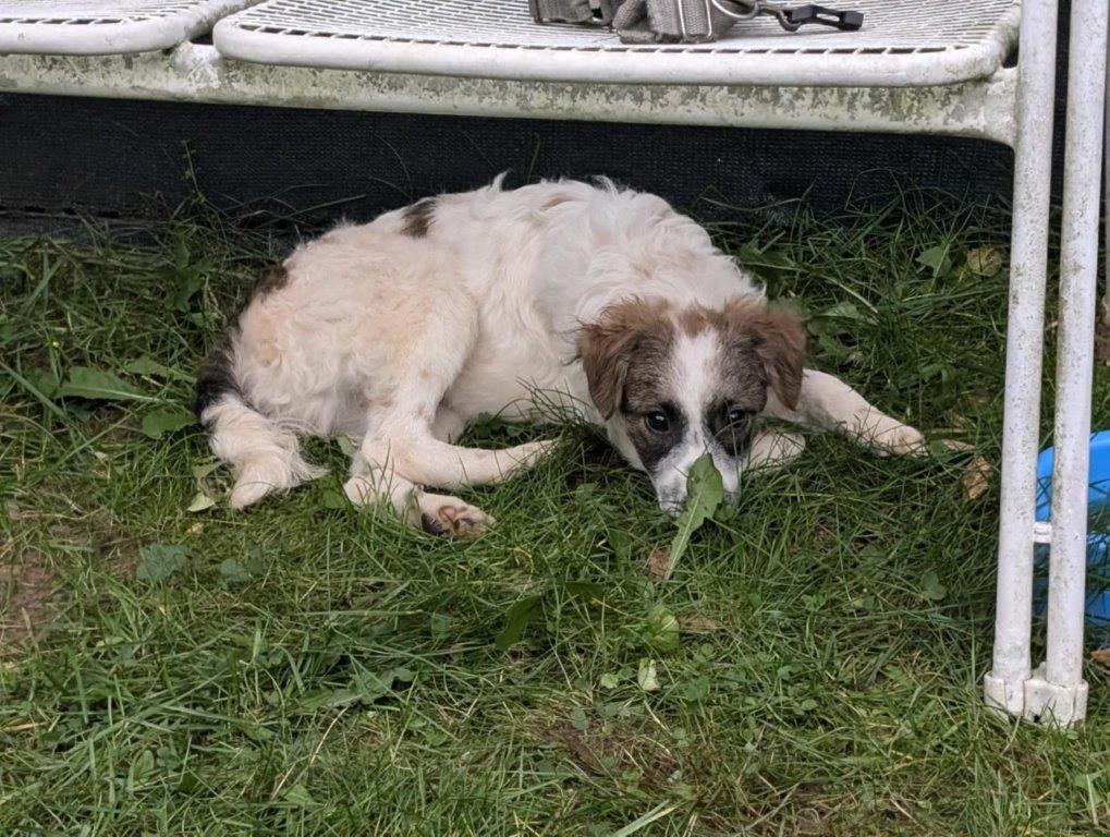 Hallöchen, hier bin ich, der kleine Quinn, (38cm und wiege zur Zeit 7kg) und werde wenn ich erwachsen bin wohl mittelgroß werden. Geboren bin ich am 19.05.2025 in einem Land, wo es für Welpen oft nicht so schön ist. Ich musste die erste Zeit meines jungen Lebens in einem öffentlichen Shelter mit ca. 150 anderen Welpen verbringen. Das war wirklich nicht einfach für mich. Jetzt im Herbst wurde es kalt, nass und ziemlich ungemütlich, denn da gibt es nur Betonboden und eine kleine Holzhütte. Dann wurde ich endlich entdeckt und durfte am 11.10. nach Deutschland auf eine Pflegestelle reisen. Dort lebe ich mit einem jüngeren Rüden und einer älteren Hündin problemlos zusammen. Wenn ich da zu stürmisch bin, ich sage es Euch, da bekomme ich schon mal eine Ansage von den beiden, dann gehe ich lieber wieder und beschäftige mich wieder selbst mit meinen Spielsachen. Und Spielsachen finde ich mega toll, wusste ja gar nicht das es sowas gibt, woher auch. Die verstecke ich dann ganz gerne in meinem warmen Körbchen. Ich taue auch stündlich auf und genieße immer mehr die Streicheleinheiten. Ihr seht es wird jetzt alles gut. Aaaber was mir jetzt noch fehlt ist ein eigenes Zuhause wo ich endlich richtig ankommen darf und ganz vieeel Liebe bekomme. Wer verliebt sich in mich und schenkt mir dieses Zuhause. Wenn Euch bewusst ist, das Welpen noch nicht gut alleine bleiben, nicht stubenrein sind und Euer Leben total auf den Kopf stellen, dann meldet Euch gerne bei uns.