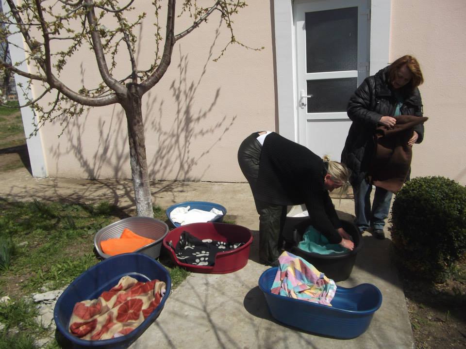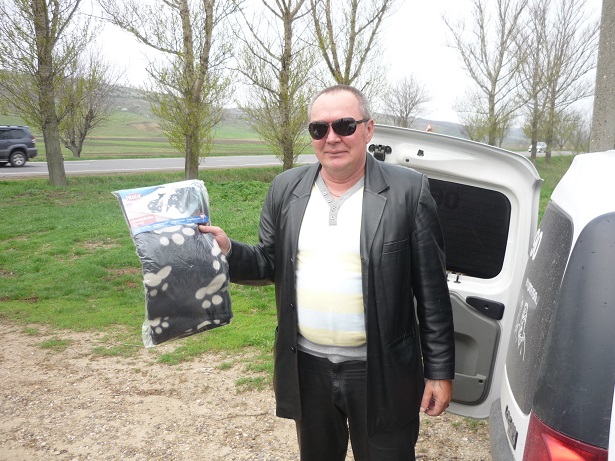 Noch ein nettes Erlebnis möchten wir Ihnen erzählen: Noch müssen wir ja im Hotel in der kleinen Stadt wohnen, ein paar Kilometer vom Heim weg. Da Vasile oft viel zu tun hatte, wollten wir die Zeit nicht im Hotel abwarten, sondern sind immer mit dem Taxi ins Heim gefahren (kostet so viel wie bei uns eine einfache Fahrt mit den öffentlichen Verkehrsmitteln J). Unser Taxifahrer war ganz begeistert (was leider nicht oft der Fall ist), als er hörte, dass wir Deutsche sind. Er hat uns dann ganz viel erzählt, wobei wir natürlich nur immer einzelne Dinge verstanden haben, irgendwie mit ein paar Worten englisch, ein paar deutsch und Hände und Füße. Er gab uns dann seine Rufnummer und immer wenn er Zeit hatte, hat er uns abgeholt oder zum Heim gefahren. Er hat das wohl auch daheim seiner Familie erzählt und am nächsten Tag hat er uns gleich eine ganz neue Hundedecke gegeben, ein Geschenk seiner Tochter. So etwas freut uns unheimlich, zeigt es doch, dass wirklich gerade die jungen Leute immer offener für die Tiere werden.