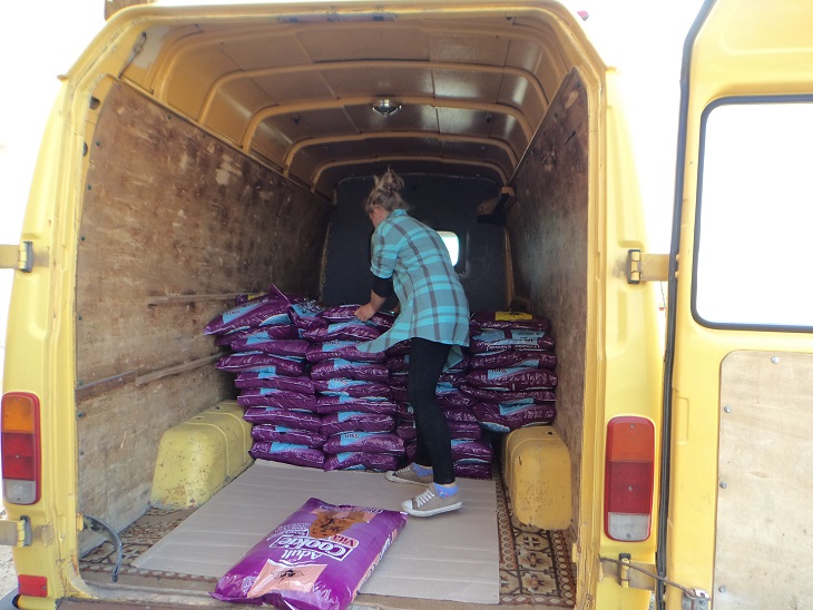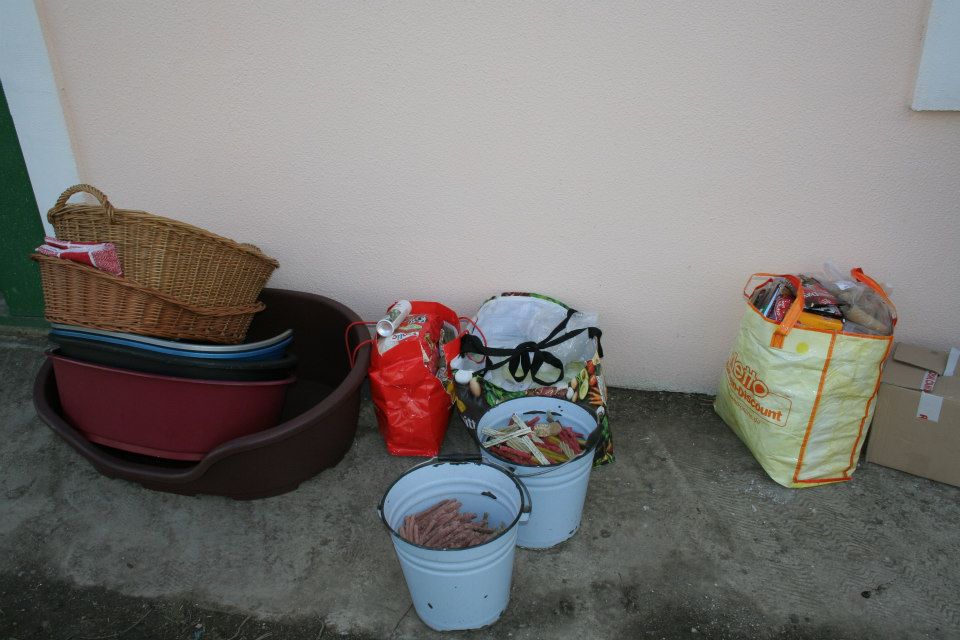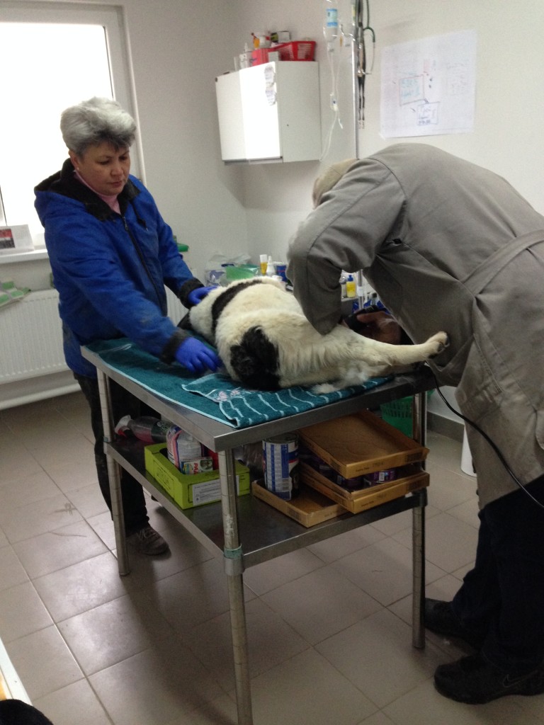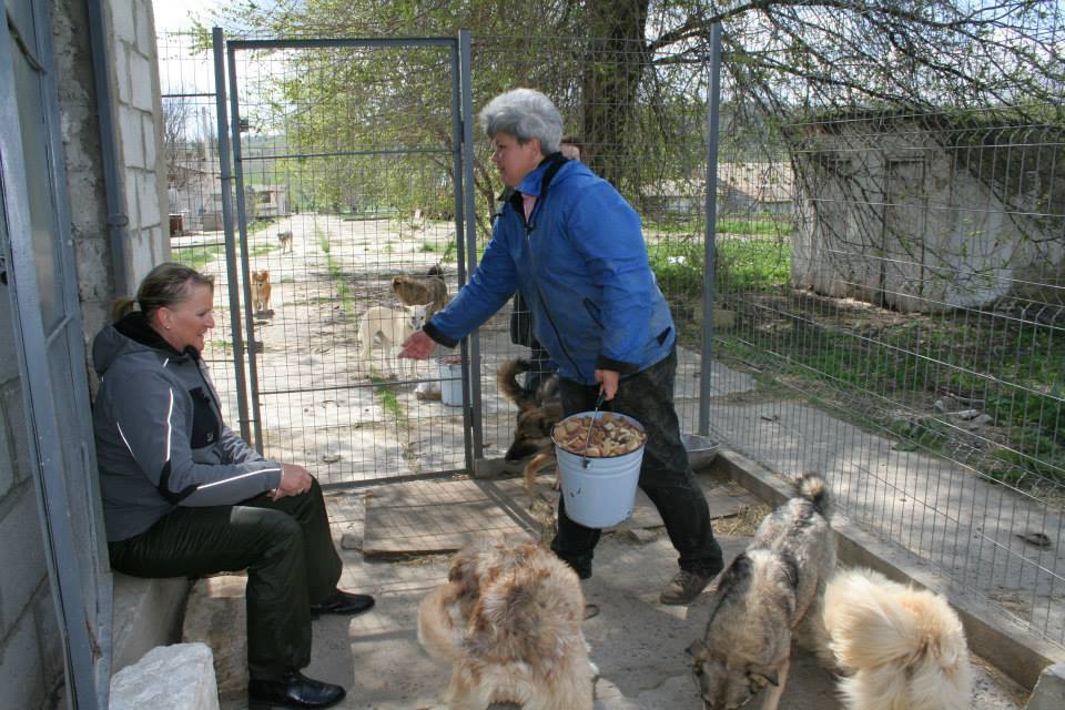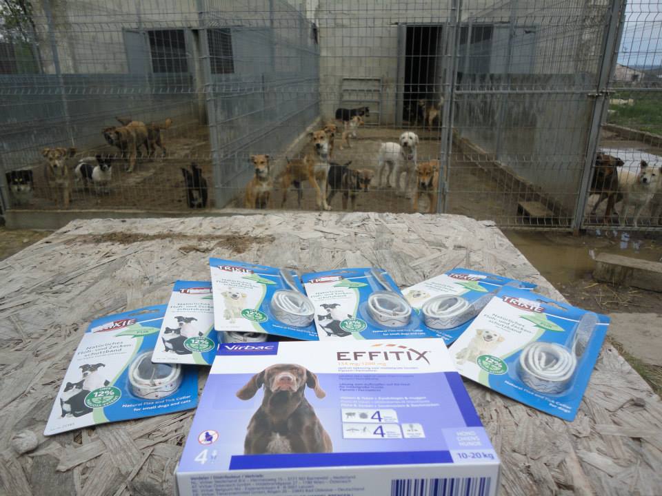 Nach den ersten Begrüßungen haben wir erst mal die mitgebrachten Spenden aufgeräumt und dann Pläne gemacht, wie wir das mit den vielen Flohhalsbändern und Spot-on machen wollten. Natasha und Marina haben dann gleich angeboten, an ihren freien Tagen ins Heim zu kommen und zu helfen. Und wir haben es wirklich geschafft, allen 300 Hunden die Halsbänder umzulegen und entwurmt haben wir auch gleich noch!