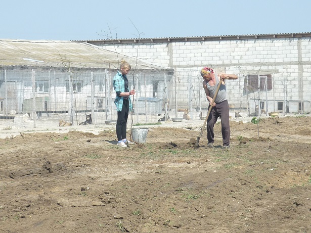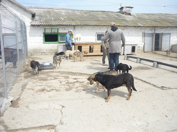 Und natürlich sind wir auch einen Tag – leider vom Wetter her der schlimmste – nach Chisinau gefahren und haben Victor und Berta mit Laiko besucht. Oh Gott, was für ein grausamer Ort, wo diese Tiere „leben“. Auf einem dreckigen Platz sind ganze Reihen von Minizwingern, nur der blanke Stein. Darin hausen lauter Kausaren und alle haben sie abgeschnittene Ohren, selbst die Welpen schon. Die Hunde schauen alle so traurig aus, ungepflegt und ungeliebt. Auch sie sind – obwohl sie als Wachhunde gehalten werden – dankbar für ein Leckerli und ein gutes Wort. In einem dieser Zwinger leben Berta und Laiko. Sie haben gar nichts in ihrem Zwinger, keine Decke, kein Stroh. Und sie haben Angst. Als wir zu ihnen rein gehen, verziehen sie sich in die hinterste Ecke, dicht aneinander gedrängt. Berta knurrt und würde in ihrer Angst sicher auch beißen, wenn man sie hier anfässt, während Laiko nur die Augen angstvoll raus dreht und den Kopf auf den Boden legt. Man möchte nur weinen, wenn man diese Tiere sieht. Die Tage wird ihr Auslauf in der Casa fertig und wir können es kaum erwarten, bis sie bei uns einziehen können und endlich einen guten Platz mit gutem Futter und weicher Decke und Stroh haben. Sie werden nie mehr diese Angst haben müssen und irgendwann werden auch sie wieder Vertrauen zu uns Menschen fassen können, zumindest Laiko.