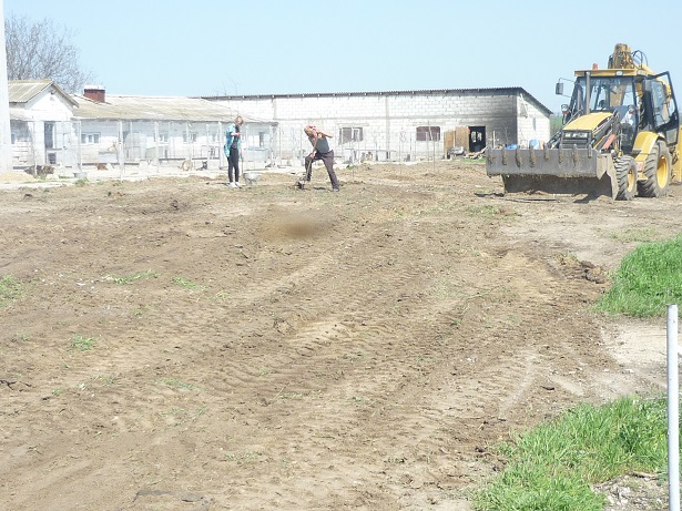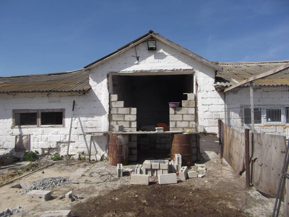 Noch immer hängen 3 Hunde an der Kette, was mir ja jedes Mal ein Dorn im Auge ist, weil z.B. Manny so voller Leben steckt und er langsam versauert. Und Slavik ist so ein toller liebenswerter Hund, der nur einen kleinen Radius hat und dann stoppt ihn die Kette. So haben wir uns mit unserem „Bauherrn“ getroffen und viele Pläne gemacht. Der ehemalige Platz von Manny ist ein tolles Areal, wenn die Halle aufgeräumt ist und davor ein Auslauf gemacht wird. Dort haben dann mehrere Hunde ausreichend Platz. Uns ist sofort eingefallen, dass das der ideale Platz für Alga und ihre 4 Kids ist, die ja alle recht groß sind und in einem wirklich kleinen Auslauf sind, der ihrem Bewegungsdrang in keinster Weise gerecht wird.