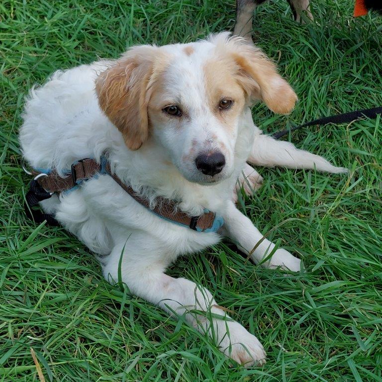 Mensch Leute, ich kanns Euch sagen, mein Leben hat eine tolle Wende genommen. Als Zwerg kam ich mit vielen anderen Zwergen ins städtische Shelter in Rumänien, da war unser Leben echt nicht besonders toll. Aber weil ich so nett und freundlich bin, wurde ruck zuck eine nette Pflegestelle für mich gefunden und jetzt bin ich in Deutschland und was soll ich sagen….ich finds bombe. Die sind alle soooo nett zu mir und ich hab auch Hundekumpels, mit denen spiele ich total gerne. Menschen finde ich toll, auch Kinder mag ich gerne, wenn sie wissen, wie man mit mir umgehen muss. Frauchen sagt, wir lernen jetzt alles, was ein gut erzogener Hundebub so wissen muss. Hab schon so ein Dings dran, Sicherheitsgeschirr heißt das, und wenn wir den Garten verlassen bekomme ich noch ein Kabel dran, sie sagen Leine dazu. Ist mir alles recht, ich will schliesslich dabei sein. Ich kann inzwischen Treppen steigen, weiß ,dass man Geschäfte draußen erledigt und nachts schlafe ich brav durch. Ach ja, ich soll noch sagen, dass ich jetzt auf Körbchensuche gehe und wir eine nette Familie suchen, die mich für immer adoptieren möchte, Frauchen sagt so riesig werde ich sicherlich nicht, somit passe ich gut in Eure Familie, oder?…Kommt ihr mich mal besuchen? Ich würde mich tierisch freuen, versprochen. Ich bin am 05.05.25 geboren und akt. 33 cm und um 7,5 kg schwer. Euer Sancho