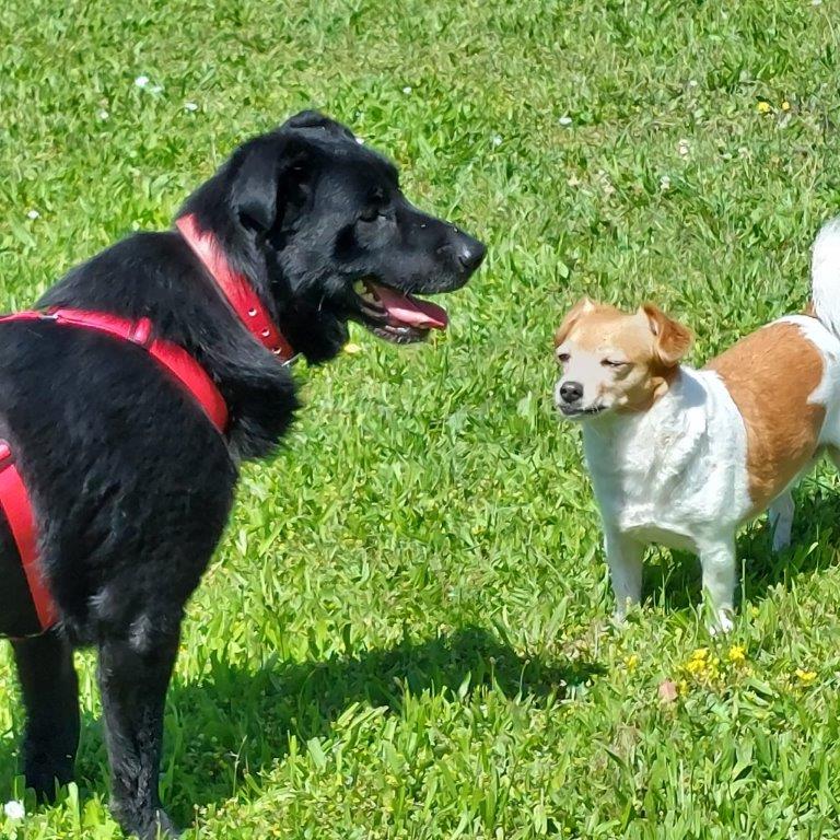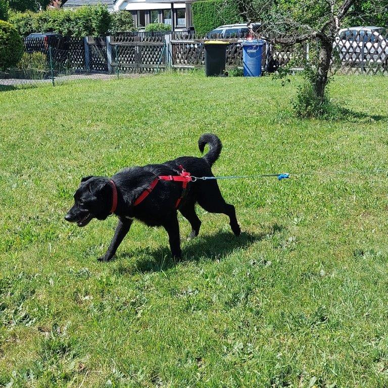 Skinny – unser Labrador-Mix – ist etwa 5 Jahre alt, gute 50 cm hoch, 25 kg schwer, stubenrein, Menschen und Artgenossen gegenüber freundlich, dazu ein Schmußer und Genießer. Skinny erträgt Hausarbeit und langweilige Bürozeiten ohne Stress, Autofahrten lassen ihn ebenso entpannt bleiben, er wartet brav bis es weiter geht. Skinny ist sehr interessiert an seinem Umfeld, bei Spaziergängen wird daher viel geschnüffelt und jederman (so es für die Person OK ist) interessiert abgecheckt. Leinenführigkeit ist allerdings noch nicht gegeben, dazu ist es draußen noch viel zu aufregend. Allerdings geht er schon deutlich besser an der Leine. Wenn er übertreibt, muss er einige Zeit “hinten” gehen, was ihm nicht gefällt, aber das Gassi wieder für einige Zeit entspannter macht – auch danach noch. Was besonders erfreut, ist, dass er schon auf Zuruf kommt und beginnt kleinere Kommandos korrekt umzusetzen – bei wenig Ablenkung versteht sich. Seit dem 09.06.2024 ist Skinny in 90556 Cadolzburg (Nähe Nürnber) auf Pflegestelle. Dort teilt er sein Zuhause mit einem weiteren Hund. Skinny muss 5 Tage die Woche 8 Stunden Büroarbeit ertragen und macht das prima. Er holt sich bei Kollegen gerne Streicheleinheiten und vor allem Leckerlis ab, findet aber auch dort sehr gut zur Ruhe. Nachts schläft Skinny bis in den Morgen neben dem Bett. Aktuell gehen wir viermal über den Tag verteilt Gassi. Bislang hatte er keine starken Stressmomente im Verkehr. Skinny geht derzeit viel spazieren, toben will gelernt sein, aus dieser Sicht ist es für ihn derzeit nicht von Nöten mit Artgenossen zu leben. Er mag seine Leute schon gerne für sich. Zudem mag Skinny Kinder, ignoriert Fahrradfahrer und Jogger, Jagdtrieb konnte bislang nicht festgestellt werden. Skinny ist wohl der entspannteste Auslandshund in meiner Karriere als Pflegestelle. Wer Skinny sein Herz schenkt wird so was von mit Liebe überschüttet, das ist unglaublich! Ein echter Pfundskerl! Also auf gehts, wer kommt den tollen Skinny besuchen, ihr werdet schwanzwedelnd begrüßt, versprochen!