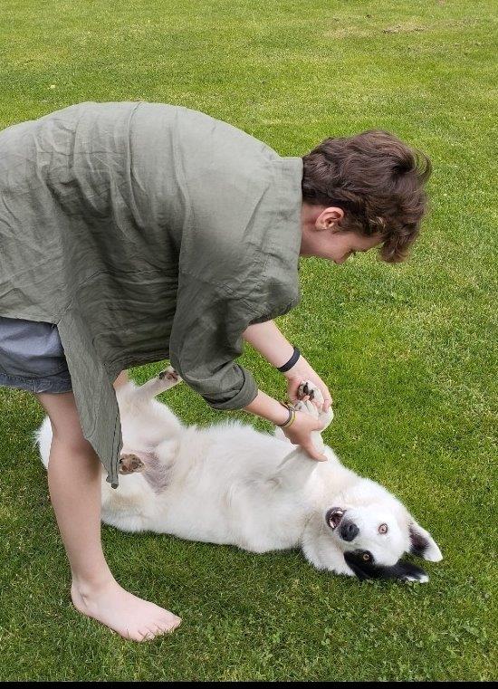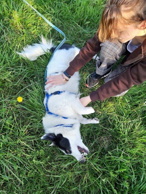 Er hat Beziehung gelernt zu Hunden und Menschen. Aber in manchen Begegnungen mit Hund & Mensch ist er noch unsicher, dann bellt