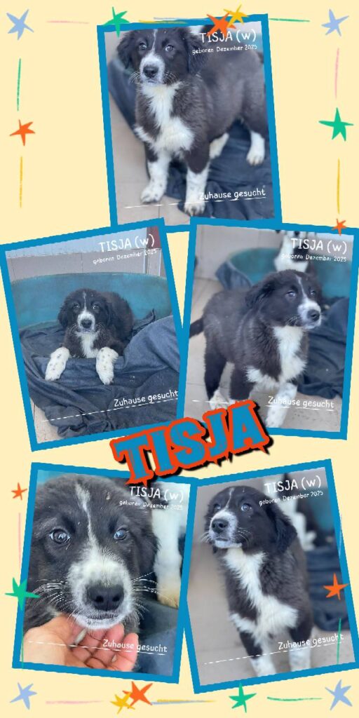 TISJA ist ein im Dezember 2025 geborenes Welpenmädchen , das aktuell in einem privaten Tierheim bei Dana in Botoșani (Rumänien) lebt. Sie ist die Tochter der Hündin Sabah, die im Winter