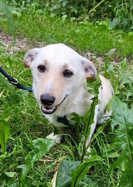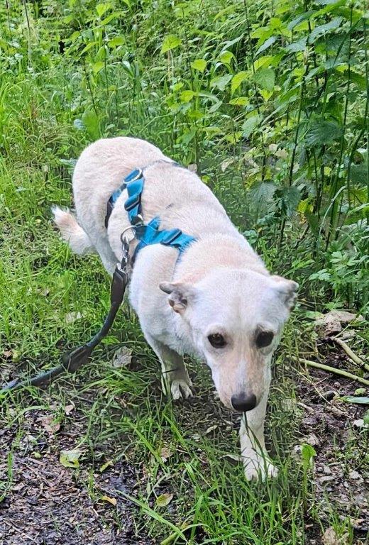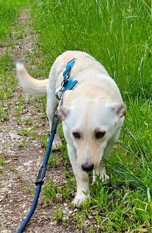 Er ist bereits am ersten Abend zusammen mit den Hündinnen der Pflegestelle Gassi gegangen. genießt es ihm Garten zu sein, sich auf der Wiese zu strecken und herumzukugeln. Auch hat er schnell gelernt, dass die Geschäfte nicht in der Wohnung, sondern draußen zu erledigen sind.