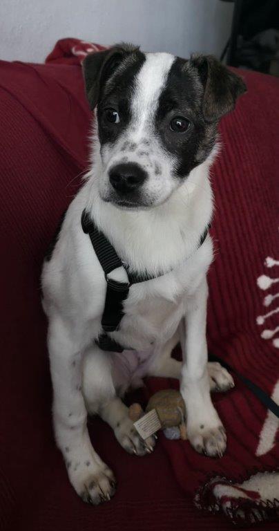 Mit ihren 4 Monaten ist Ulla ein zartes Hundekind. Aktuell ist sie etwa 33 cm groß und wiegt rund 6 kg – sie wird vermutlich maximal mittelgroß werden. Ulla wird wahrscheinlich keine Draufgängerin werden, sondern eher eine sanfte, feinfühlige Begleiterin.