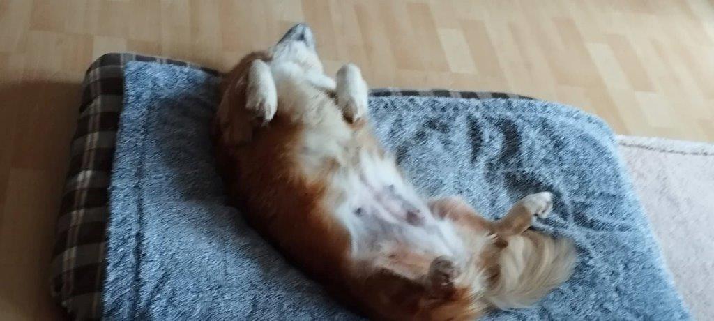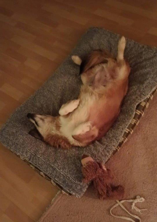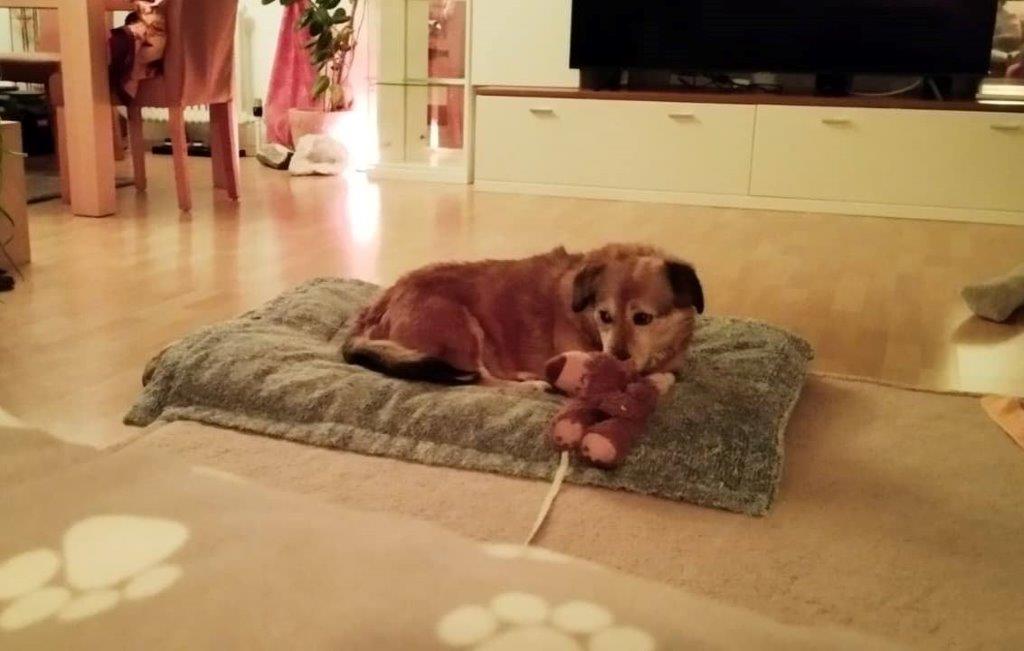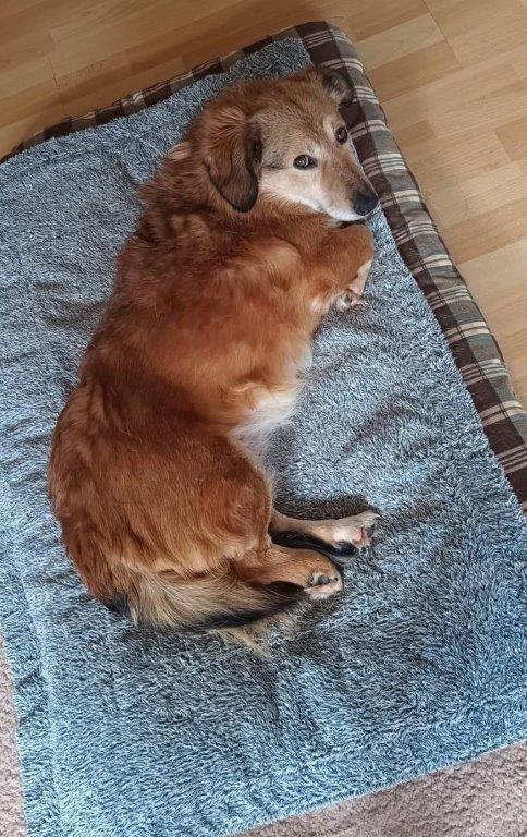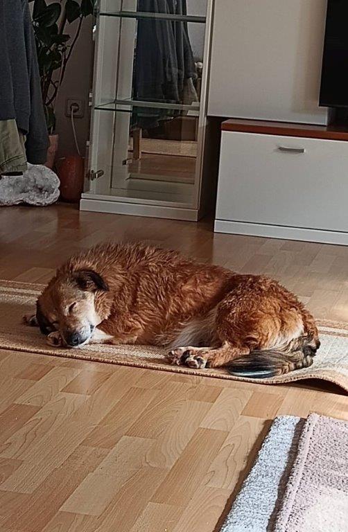 Die süße, kleine ca. 5-jährige Corgi-Mix Hündin Vicky hat endlich Ihr Ausreiseticket nach Deutschland erhalten und ist am 14.02. aus einem rumänischen Shelter auf Ihre Pflegestelle in 90562 Kalchreuth ausgereist. Hier lebt Sie mit Ihren Pflegeeltern und einer knapp 3 jährigen Hündin problemlos zusammen. Die ersten Tage musste sich Vicky erstmal von der langen Fahrt, dem ganzen Stress und der Kälte im Shelter erholen und hat die ersten Tage erstmal fast komplett durchgeschlafen. Nach und nach taut Vicky immer mehr auf, nach zwei Tagen hat sie schon verstanden sich an die Terrassentür zu stellen, damit sie dann in den Garten kann um dort Ihre Geschäfte zu erledigen, demnach ist sie auch schon stubenrein. Vicky ist noch ein bisschen vorsichtig, aber im Haus keinesfalls ängstlich, sie schaut sich schon neugierig um -wer wo was- sich im Haus bewegt, und hat auch keine Angst vor alltäglichen Geräuschen. Wenn man sich zu ihr auf den Boden setzt, lässt sie sich schon gerne streicheln, aktiv kommt sie nach und nach auf Ihre Menschen zu, aber sie ist noch keine Kuschelmaus die einem auf den Schoß springt und gestreichelt werden möchte. Einen kurzen Besuch hatten wir auch schon, hier ist Vicky entspannt und nicht ängstlich, sie bleibt in Ihrem Körbchen liegen und schaut sich alles in Ruhe an. Vicky liebt es endlich ein eigenes, warmes Bettchen zu haben und auf Ihrem Hundebett zu schlafen, das Hundespielzeug hat sie auch schon interessiert begutachtet und mag es schon ein bisschen zu spielen. Was wir uns für Vicky wünschen ist ein ruhiges, entspanntes Zuhause mit Geduld, Liebe und Zeit, um sie weiterhin in Ihrem Tempo “ankommen” zu lassen. Natürlich muss sie noch einiges lernen, aber wir als Pflegefamilie haben überhaupt keine Bedenken, dass sie nach und nach alles erlernen wird was ein Hundemädchen so kennen und wissen muss. Wir könnten Sie uns auch gut bei älteren Menschen vorstellen, vielleicht mit einem kleinen Garten, die mit ihr kleine Gassirunden für den Anfang einplanen. Sicherlich wird Vicky aufgrund Ihrer kurzen Beine kein Hund für Joggingrunden, Fahrrad fahren oder ähnliches werden, ebenso sollte auf Treppensteigen, wenn möglich verzichtet werden. Von kleineren Kindern würden wir abraten, nur aus dem Grund, weil sie noch viel Ruhe braucht und ihr das Gewusel dann womöglich einfach zu viel wäre. Größere Kinder, die hundeerfahren sind, und auch Ihre Ruhephasen respektieren, dürften kein Problem sein, konnte aber nicht getestet werden. Ein weiterer Hund kann in Ihrem neuen Zuhause vorhanden sein, ist aber kein Muss. Da Vicky momentan ein bisschen zu viel Gewicht mit sich rum trägt, wäre es außerdem wichtig weiterhin auf Ihr Gewicht / Ihre Ernährung zu achten, damit sie auch weiter abnimmt und gesund bleibt. Das Alleine bleiben haben wir auch schon ein bisschen angefangen zu üben, sie bleibt sehr brav in Ihrem Körbchen liegen, es dürfte also kein Problem sein sie irgendwann einmal das eine oder andere Stündchen alleine zu lassen. Was auf jeden Fall noch weiter geübt werden muss sind die Gassigänge, Geschirr anziehen und Leine laufen, wir haben angefangen ganz kleine Gassirunden mit ihr zu gehen, um sie nicht zu überfordern. Vicky hat sehr schnell unser Herz erobert. Sie ist absolut unkompliziert. Sie “fordert” nichts ein und ist mit den kleinsten Dingen (ihr Hundebett, ein Leckerchen, ein kleines Streicheln) einfach nur glücklich und zufrieden.