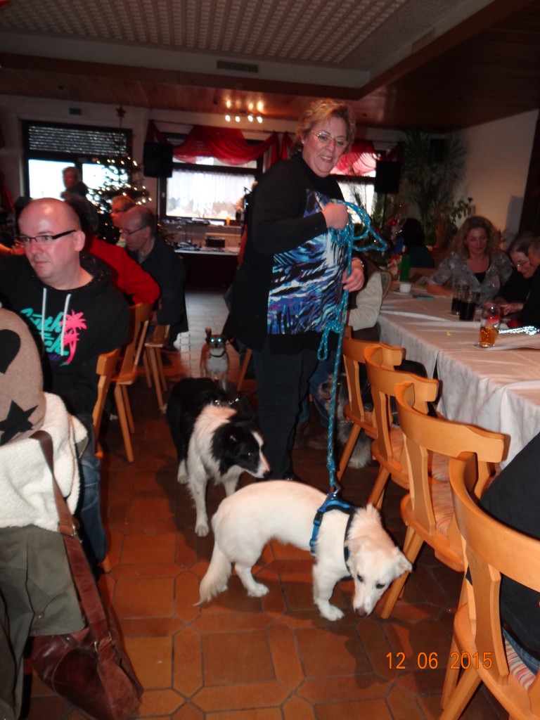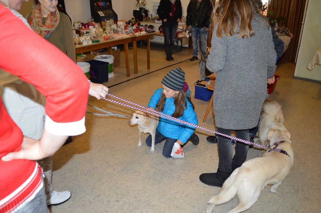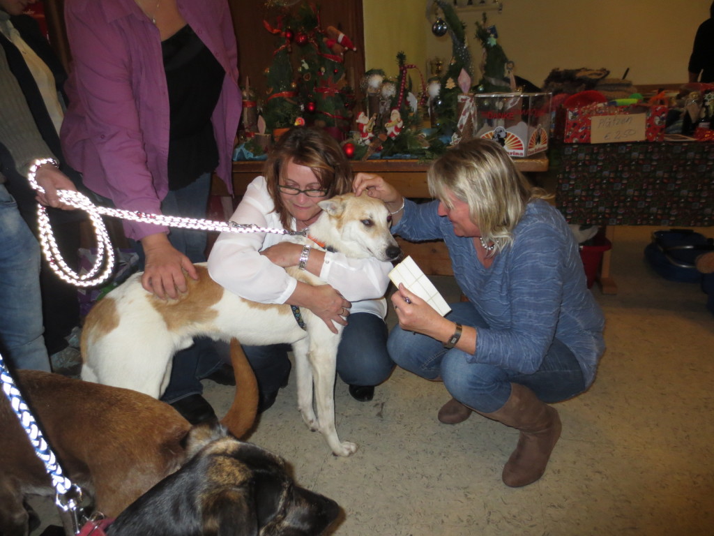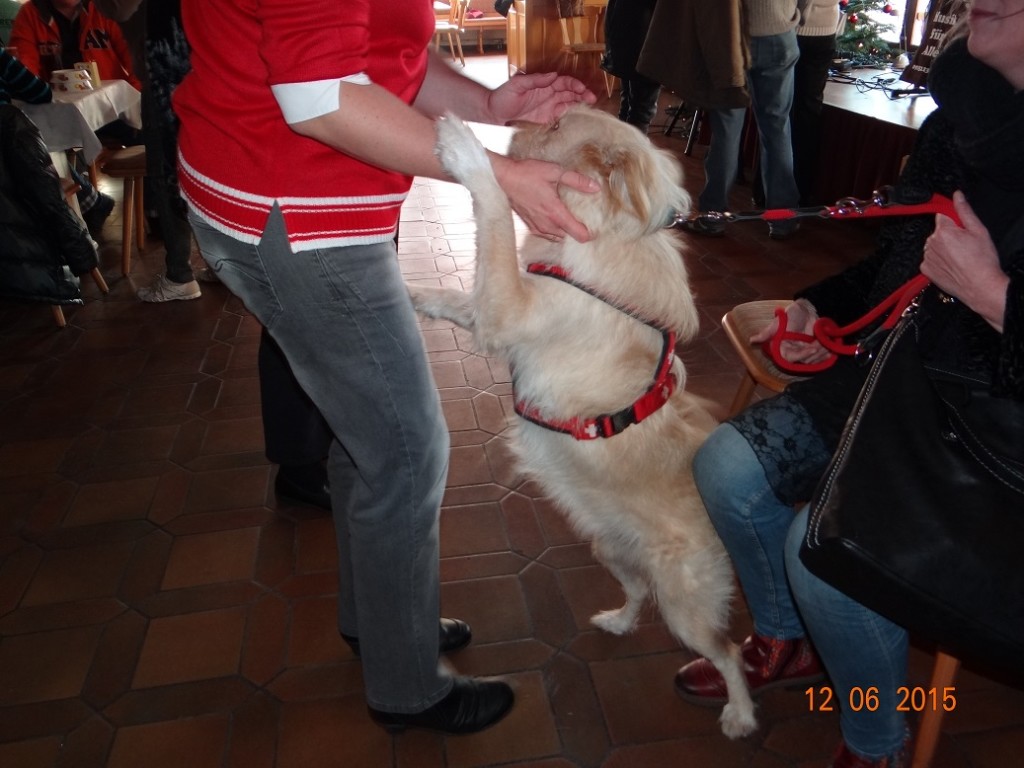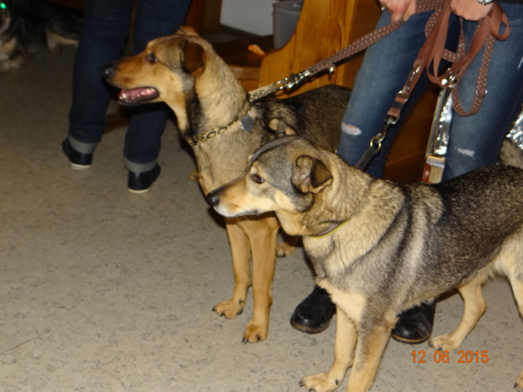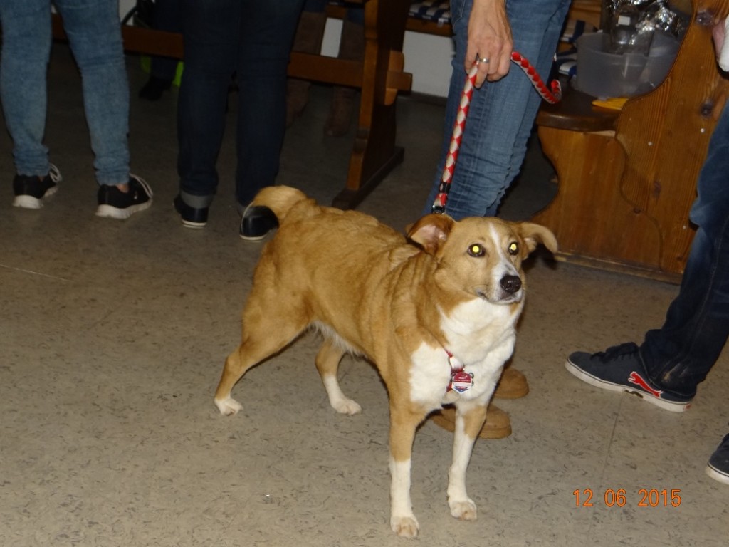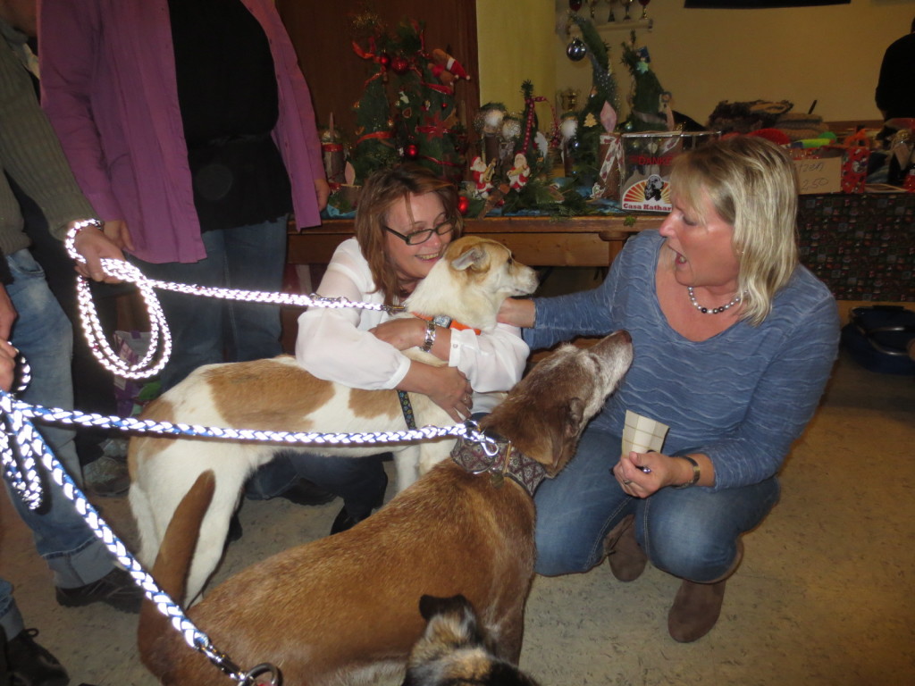 Am 06.12.2015 fand wieder unsere kleine Weihnachtsfeier statt und ich muss sagen, es war so eine schöne und harmonische Feier, wir waren einfach am Abend dann alle nur glücklich. Die Stimmung war super, es waren ganz viele liebe Menschen mit ihren tollen Vierbeinern da, der Musiker…… war sehr gut und hat für jeden Geschmack etwas dabei gehabt. Es gab eine Bauchtanzgruppe (einen Bauchtanz zu Jingle Bells war mal eine ganz ungewohnte Interpretation) und natürlich unser leckeres Kuchenbüffet. Alles wieder selbstgebacken und so gut…. sogar ein „Casa Katharina“-Kuchen war dabei (viel zu schade zum Anschneiden ). Es gab tolle Lose, wunderschöne Adventsgestecke, selbstgemachte Seifen und Hundekekse, natürlich auch leckere Kekse für uns Menschen und ganz viel Hundezubehör oder kleine Geschenke.