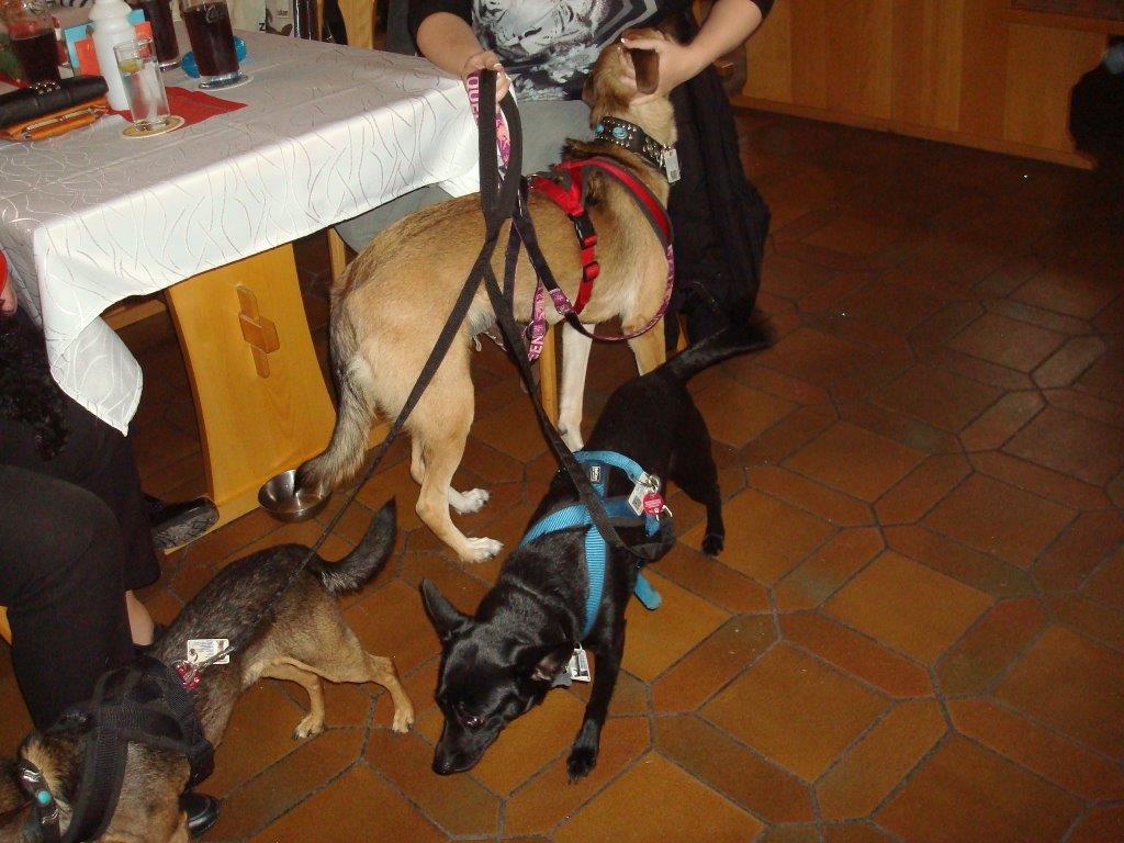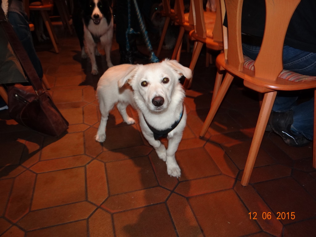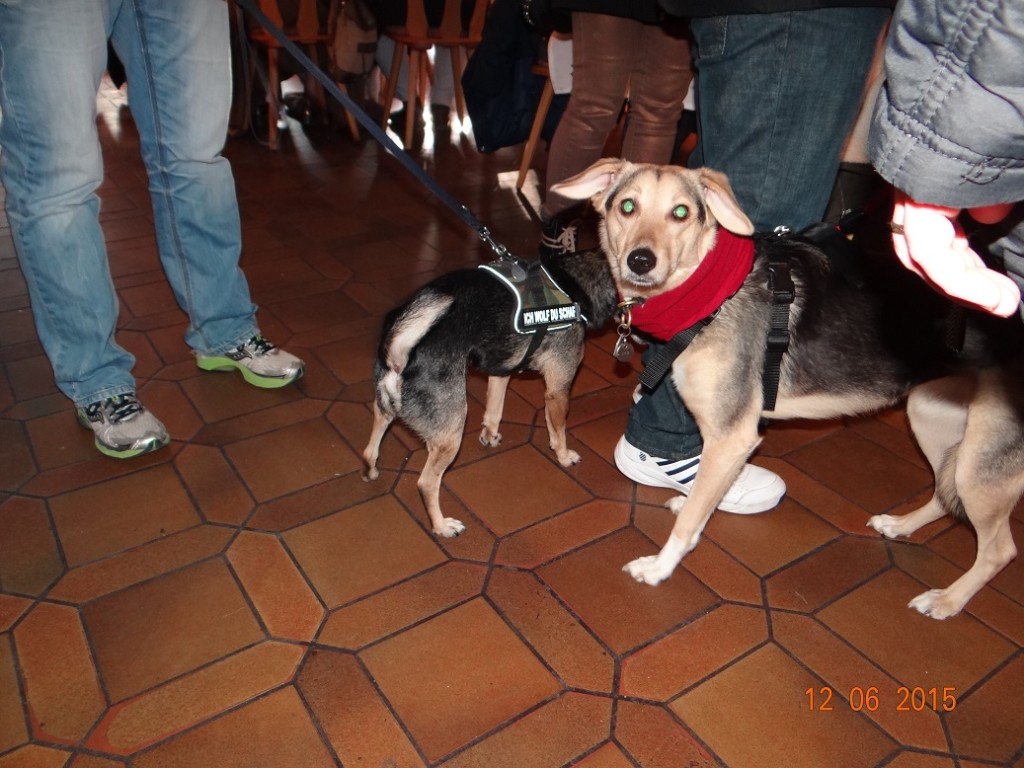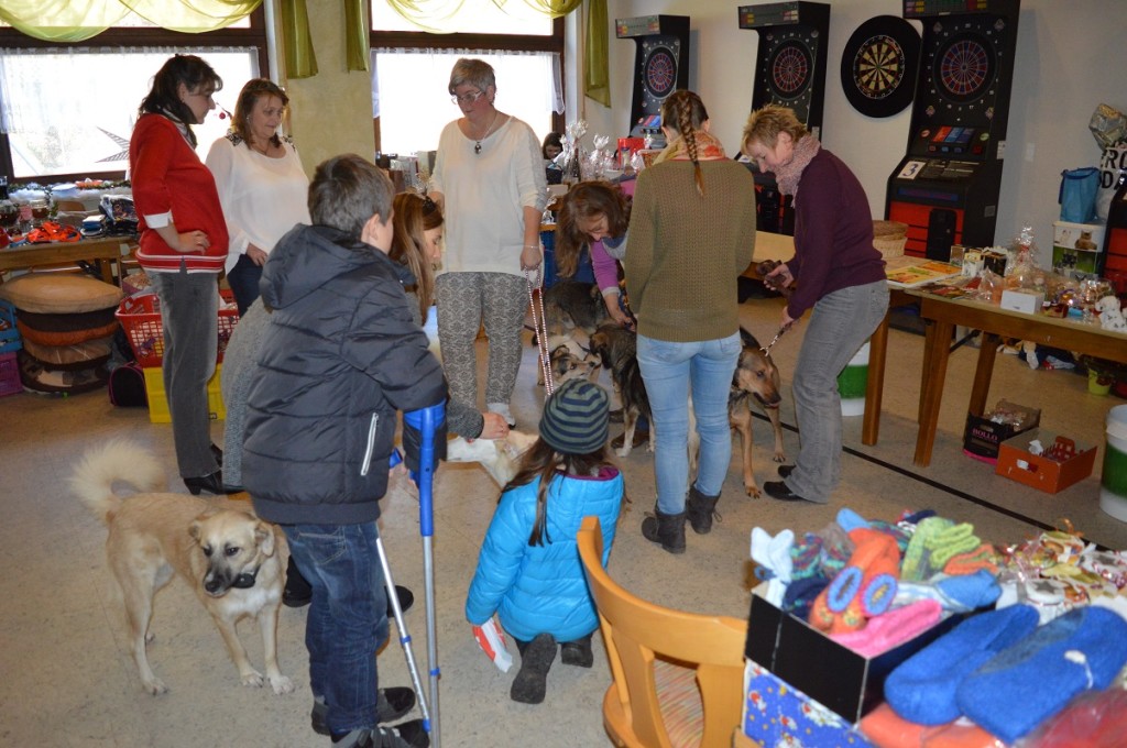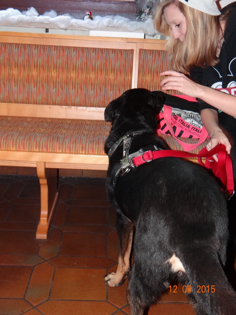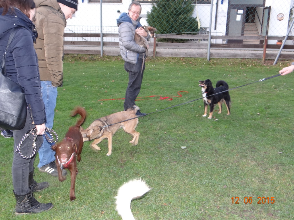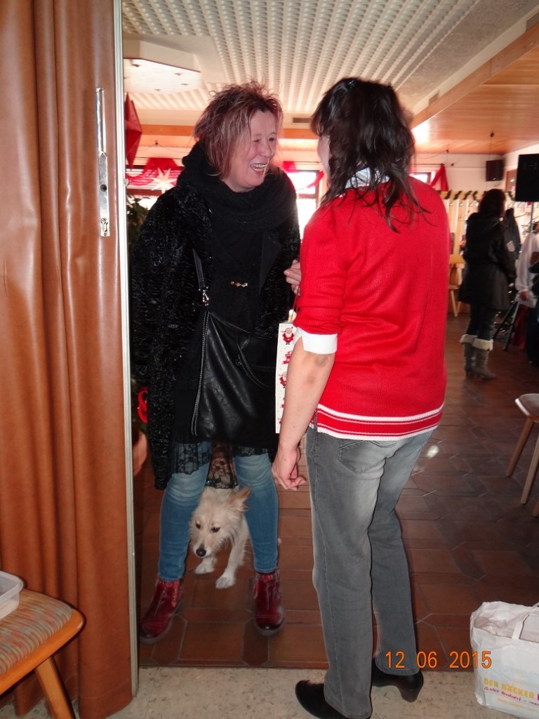 Am 06.12.2015 fand wieder unsere kleine Weihnachtsfeier statt und ich muss sagen, es war so eine schöne und harmonische Feier, wir waren einfach am Abend dann alle nur glücklich. Die Stimmung war super, es waren ganz viele liebe Menschen mit ihren tollen Vierbeinern da, der Musiker…… war sehr gut und hat für jeden Geschmack etwas dabei gehabt. Es gab eine Bauchtanzgruppe (einen Bauchtanz zu Jingle Bells war mal eine ganz ungewohnte Interpretation) und natürlich unser leckeres Kuchenbüffet. Alles wieder selbstgebacken und so gut…. sogar ein „Casa Katharina“-Kuchen war dabei (viel zu schade zum Anschneiden ). Es gab tolle Lose, wunderschöne Adventsgestecke, selbstgemachte Seifen und Hundekekse, natürlich auch leckere Kekse für uns Menschen und ganz viel Hundezubehör oder kleine Geschenke.