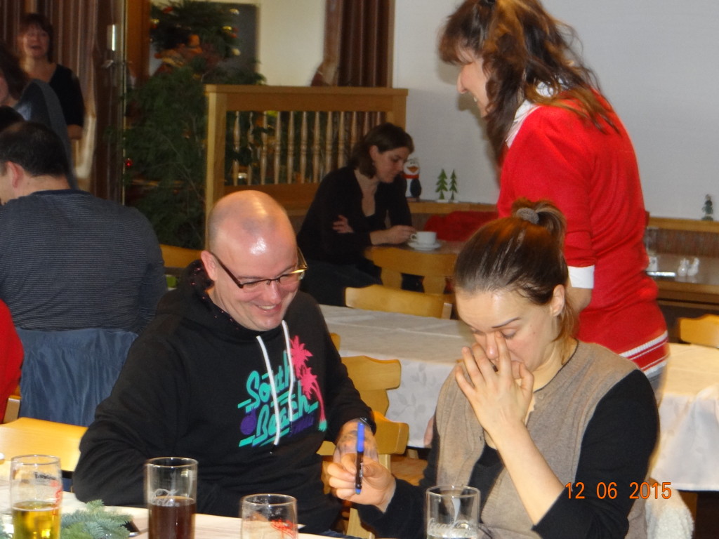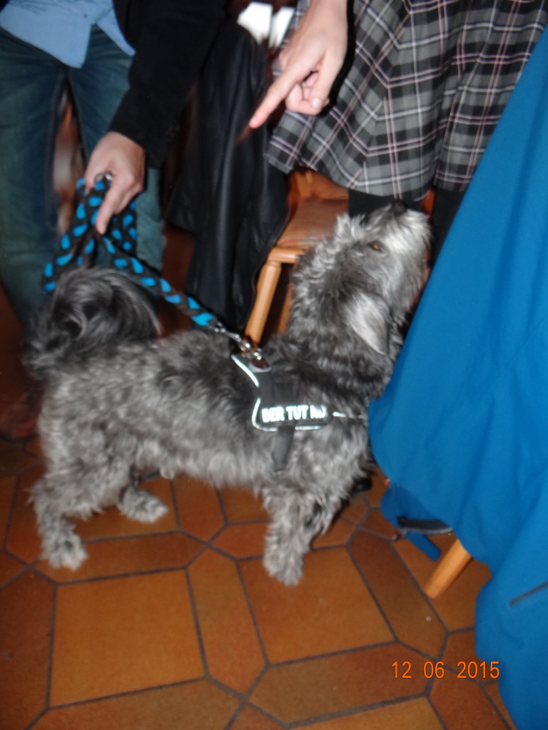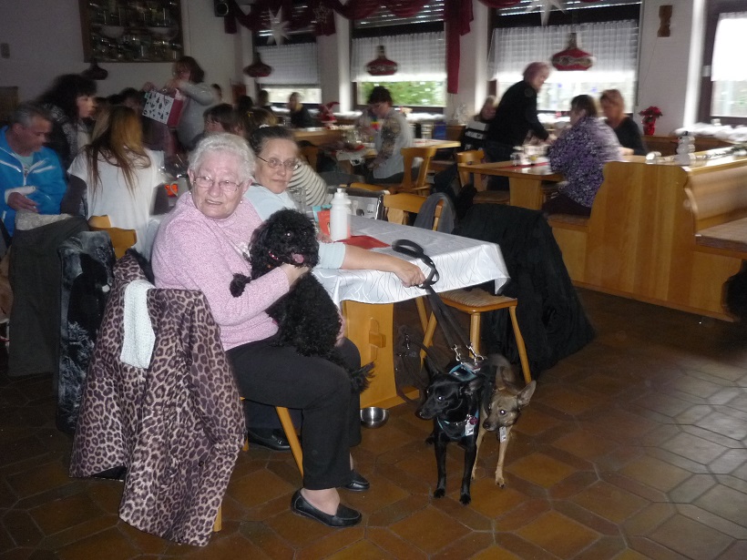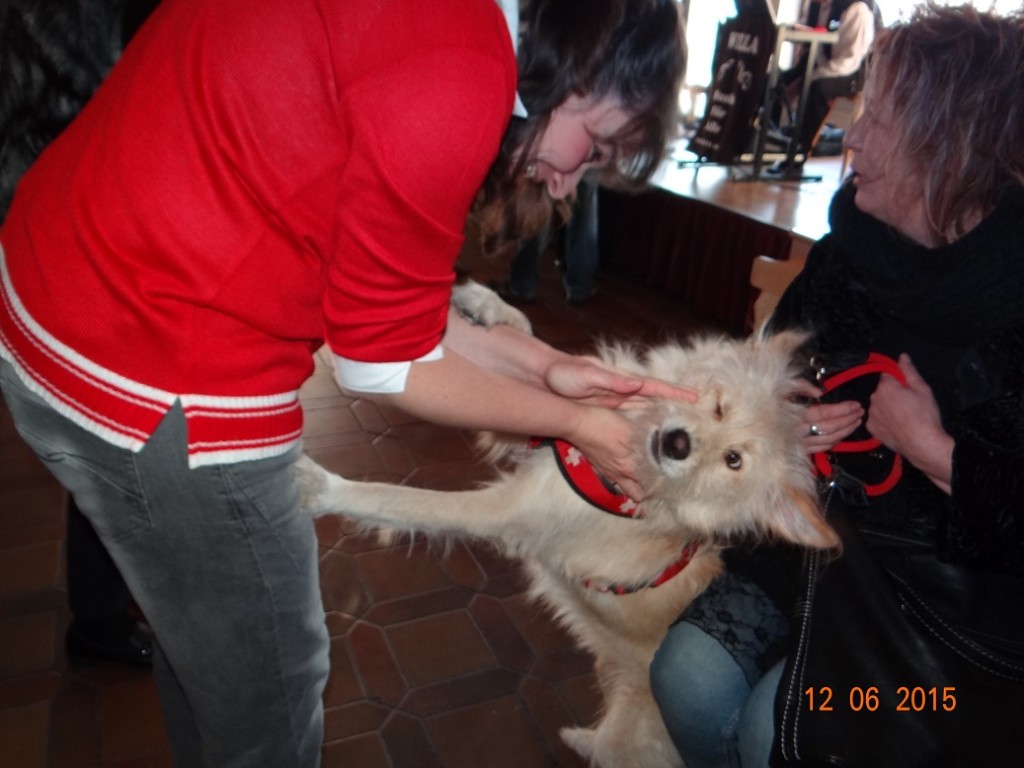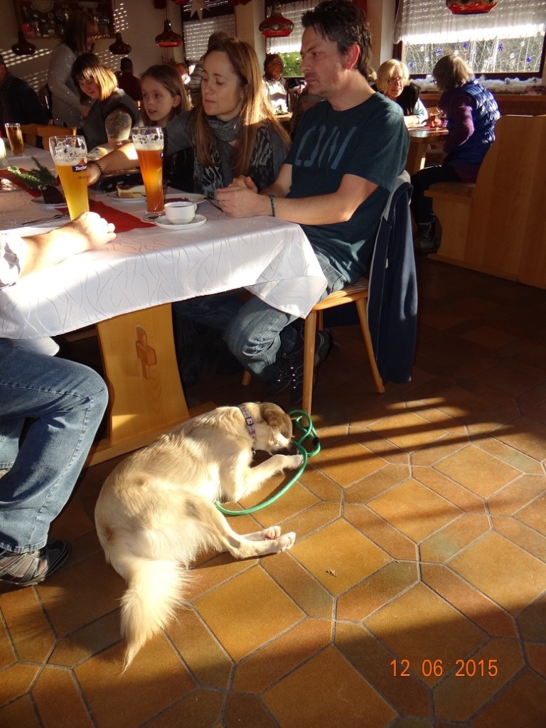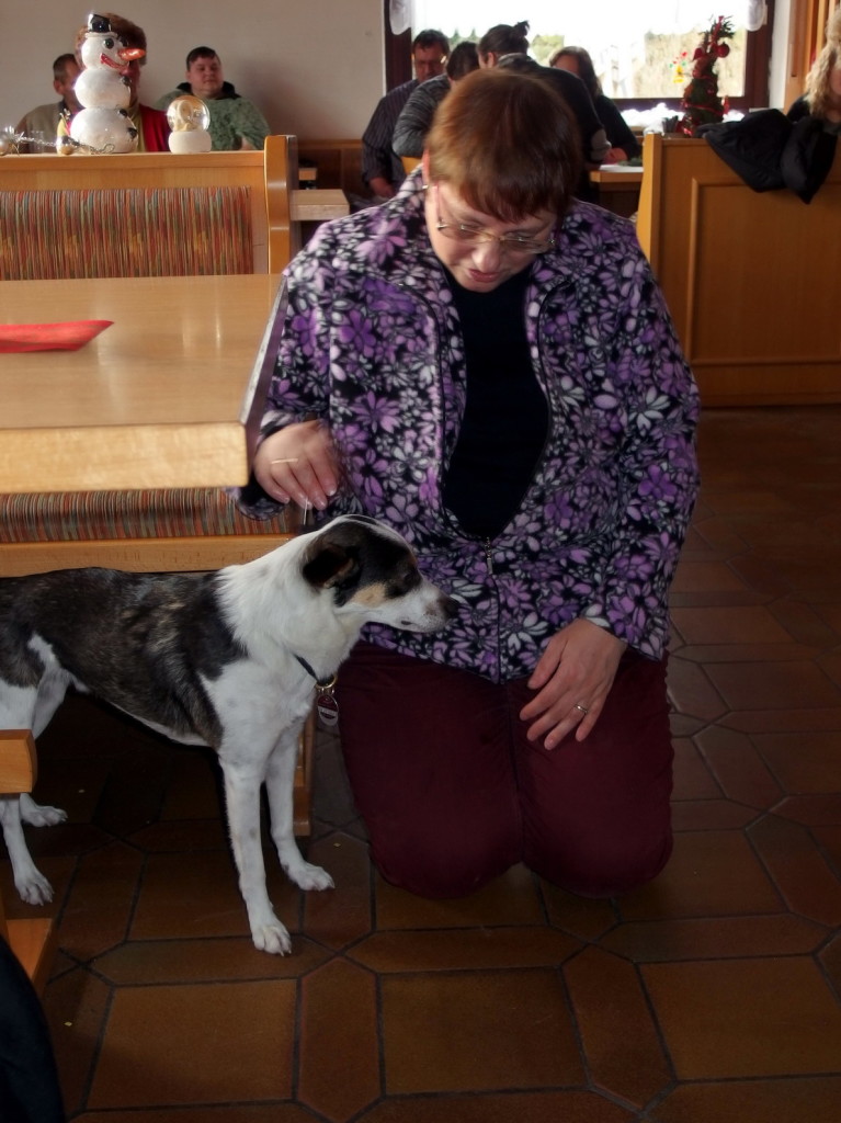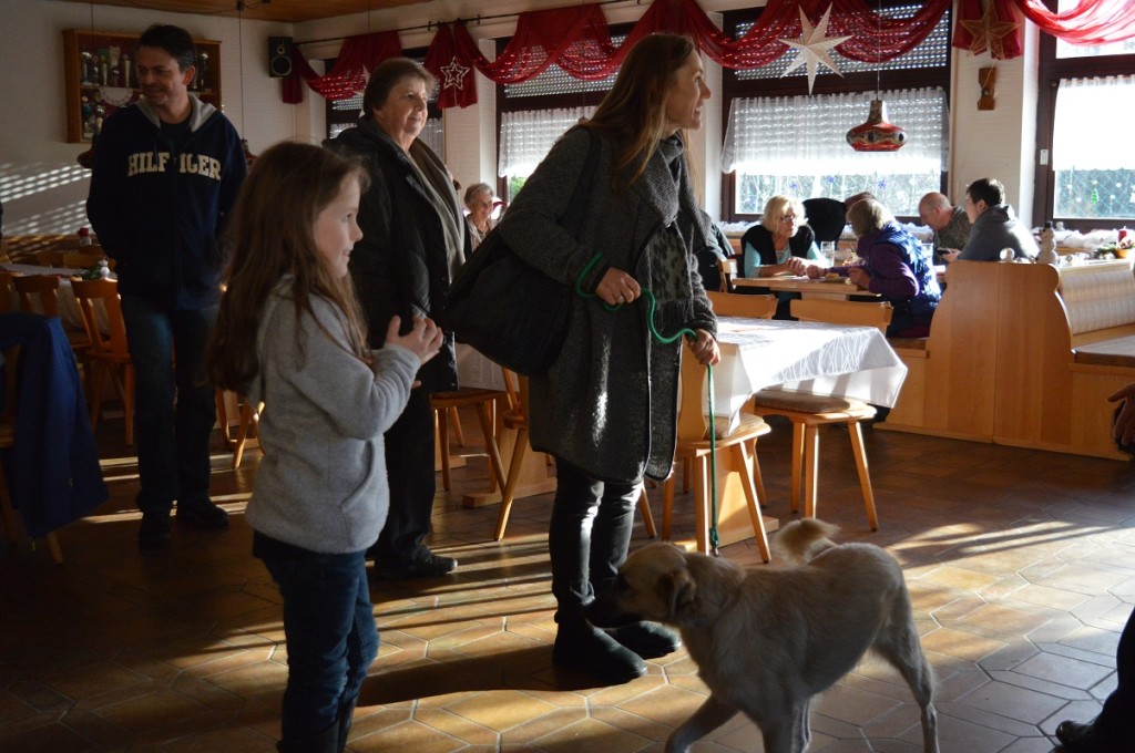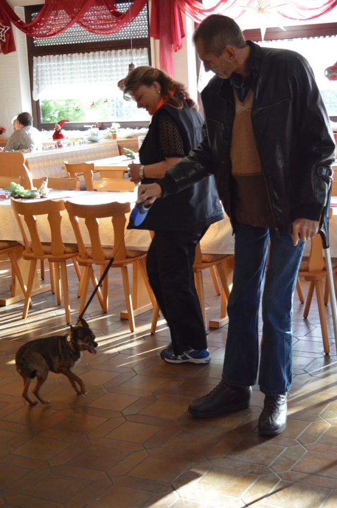 Am 06.12.2015 fand wieder unsere kleine Weihnachtsfeier statt und ich muss sagen, es war so eine schöne und harmonische Feier, wir waren einfach am Abend dann alle nur glücklich. Die Stimmung war super, es waren ganz viele liebe Menschen mit ihren tollen Vierbeinern da, der Musiker…… war sehr gut und hat für jeden Geschmack etwas dabei gehabt. Es gab eine Bauchtanzgruppe (einen Bauchtanz zu Jingle Bells war mal eine ganz ungewohnte Interpretation) und natürlich unser leckeres Kuchenbüffet. Alles wieder selbstgebacken und so gut…. sogar ein „Casa Katharina“-Kuchen war dabei (viel zu schade zum Anschneiden ). Es gab tolle Lose, wunderschöne Adventsgestecke, selbstgemachte Seifen und Hundekekse, natürlich auch leckere Kekse für uns Menschen und ganz viel Hundezubehör oder kleine Geschenke.