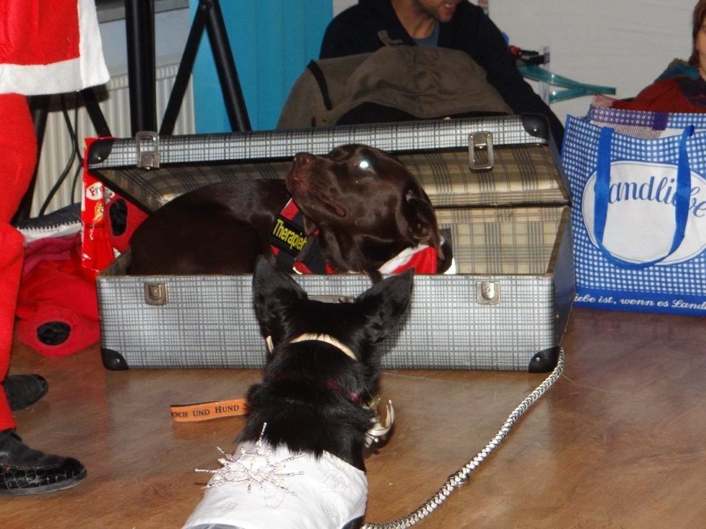 unsere Weihnachtsfeier war so schön. Wir sind immer wieder sehr stolz darauf, wie viele Gäste wir haben, das zeigt doch immer, dass unsere Arbeit geschätzt wird. Gäste bis aus der Schweiz waren da. Die Stimmung war klasse, die Hunde alle guter Laune. Wir haben wieder wunderschöne Verkaufsstände gehabt, tolle Lose, leckere Kuchen, eine schöne Musikuntermalung und einen Weihnachtsmann mit Hundevorführung. Deshalb möchte ich mich bei allen, die wieder so fleißig mitgeholfen haben, ganz ganz herzlich bedanken. Das sind Alex, Ela und Marion mit den Verkaufsständen, Petra und Angie mit den wirklich so tollen Weihnachtsgestecken, Michi, Laura, Nadine und Stefan mit den Losen, die Loseverkäufer und unsere Kuchenverkäuferinnen. Hier auch gleich noch ein ganz ganz großes Dankeschön an die fleißigen Bäckerinnen, die auch dieses Jahr wieder ein traumhaftes Kuchensortiment hergestellt haben. War sooo lecker!!!!Und letztendlich natürlich ein großes Danke an unsere Gäste mit ihren liebenswerten Vierbeinern, denn ohne Sie wäre letztendlich ja alle Arbeit umsonst.