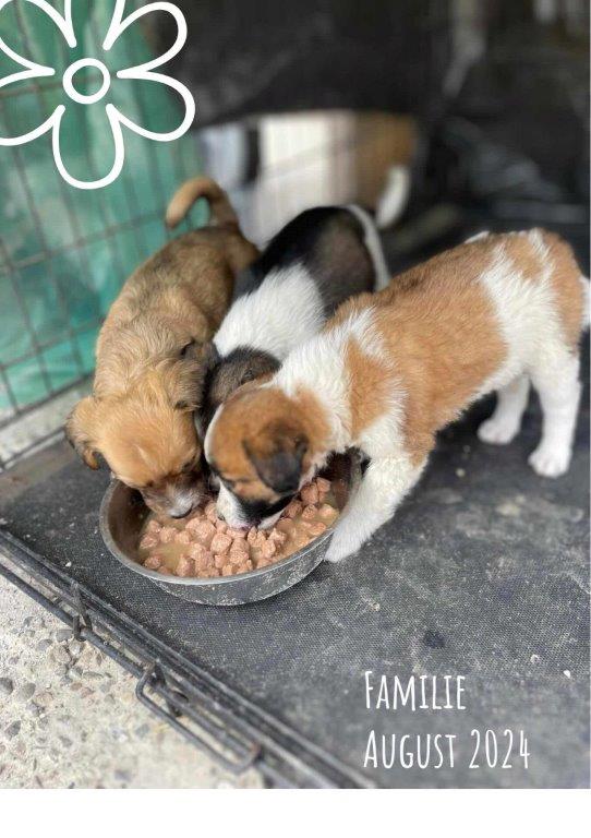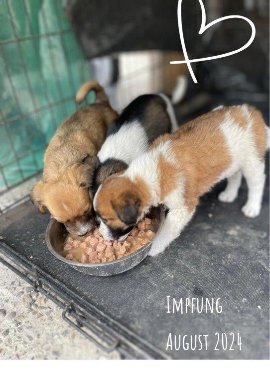 YUMA wurde am 16. August 2024 von einer lieben rumänischen Tierschützerin gefunden. Sie wurde mit ihren beiden Geschwistern mit ziemlicher Sicherheit ausgesetzt. Alle drei versuchten bei über 40 Grad Hitze unter einem kleinen Holztisch auf einem Rastplatz ein wenig Schatten zu finden. Lange hätten sie das nicht durchgestanden und die drei Kleinen wurden sofort gesichert. Worüber wir sehr dankbar sind, auch wenn es wieder 3 Mäulchen mehr zu füttern gibt. Nicht nur füttern, impfen, entwurmen, kuscheln, das ganze Programm eben. YUMA lebt mit Schwester und Bruder auf einer privaten Pflegestelle in Rumänien. Ein großes Glück für sie, denn sie kann dort nun behütet und geliebt aufwachsen. Allen dreien geht es prima und machen viel Unsinn, wie es sich für Welpen einfach gehört. Ab Anfang Oktober könnte YUMA auf große Tour gehen und sie träumt auch schon ein wenig davon. So ein kuscheliges Plätzchen zu haben, Spielzeug, einen Menschen – Hundeglück!