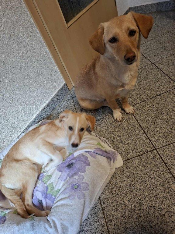 Hoppla, hier komm ich, die hübsche ZOEY, geb. 08.06.25, ca. 40 cm und 7,2 kg schwer, ich werde also mal um die 50 cm und um 15 kg werden, wenn ich erwachsen bin. Ich bin aus Rumänien nach Deutschland gekommen, hab mir alles in Ruhe angeschaut und ich muss sagen, mir gefällts hier. Ich werde oft gekuschelt, durfte baden und ein weiches Bettchen hab ich jetzt auch. Hier liegen Spielsachen herum in Hülle und Fülle, ich weiß gar nicht , wo ich anfangen soll. Hier leben auch andere Hunde, die toll mit mir spielen und komische andere Tiere, die schnurren, Frauchen sagt, die heißen Katzen. Auch ok für mich! Ich finds hier echt Bombe, aber Frauchen sagt, wir gehen jetzt auf Körbchensuche für ein “für immer zuhause”. Ja, das wäre schon toll, wenn ich endlich auch einen Lieblingsmenschen hätte, mit dem ich durch dick und dünn gehen kann, der mich lieb hat und mit mir spielt. Frauchen sagt, den werden wir bald finden, weil ich so eine lebenslustige, verspielte, total offene Maus bin, die auch Menschen gerne mag. Natürlich mag ich die, gekrault werden, das ist soooooooo toll. Bist DU vielleicht mein Lieblingsmensch und hast ein Körbchen frei? Frauchen sagt, ich bin ein Golödstück, sowohl für Familien als auch Hundeanfänger gut geeignet und passe somit in jede Familie. Vielleicht willst Du mich ja mal besuchen, ich freu mich auf Dich, Deine ZOEY.